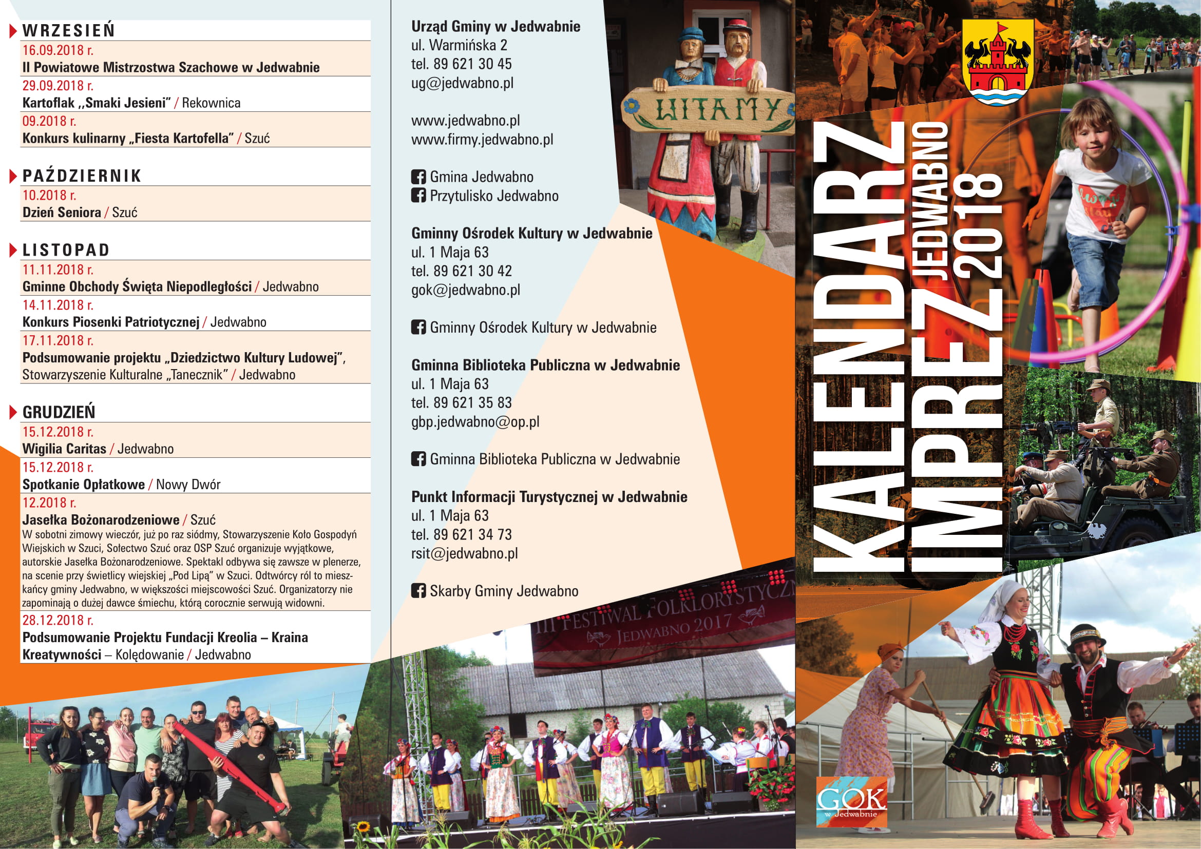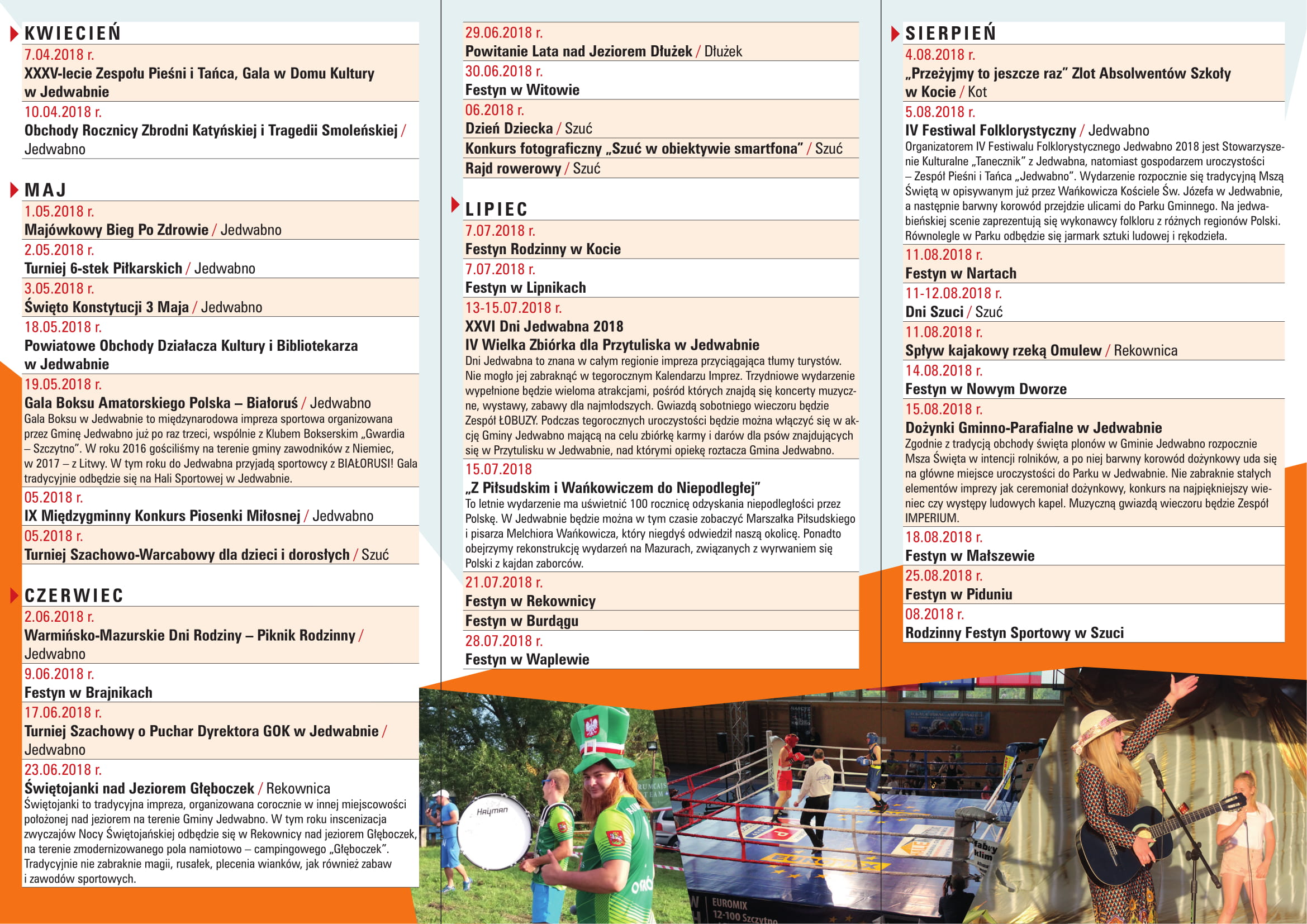 Do pobrania – wersja ulotki w formacie PDF: Kalendarz Imprez Jedwabno 2018