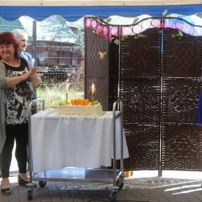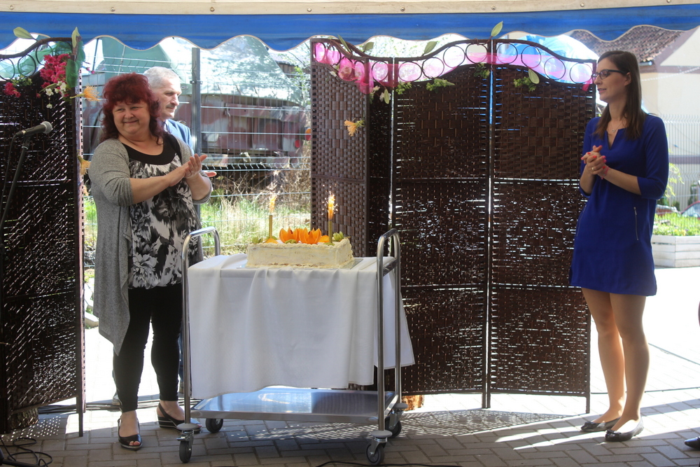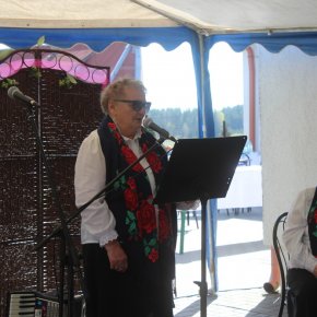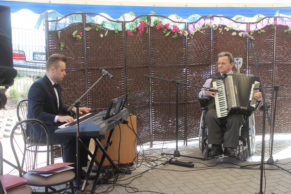 Pensjonariusze ŚDS w Jedwabnie zaprezentowali bogaty program artystyczny, przygotowany po okiem instruktora Pana Bartosza Abramskiego. Goście mieli okazję podziwiać śpiew Pana Waldemara Drozdowskiego, grę na akordeonie Pana Zdzisława Pszczólkowskiego, prezentację wiersza własnego autorstwa pt. „Róza” Pani Wiesławy Kłodowskiej, talent wokalny Pani Stanisławy Karwackiej oraz Zespół „Jedwabki”, który zaprezentował m.in. swoją najpopularniejszą piosenkę „Żegnam Cię”, do której w ubiegłym roku został nagrany teledysk. Nie zabrakło również tortu, przygotowanego specjalnie na te okazję w pracowni kulinarnej placówki, prowadzonej przez Panią Katarzynę Krawczewską. Goście mieli także okazję zwiedzić pomieszczenia Domu, po których oprowadzały Pani Bożena Harbaszewska, Pani Wioleta Wojciechowska oraz instruktorzy zajęć.