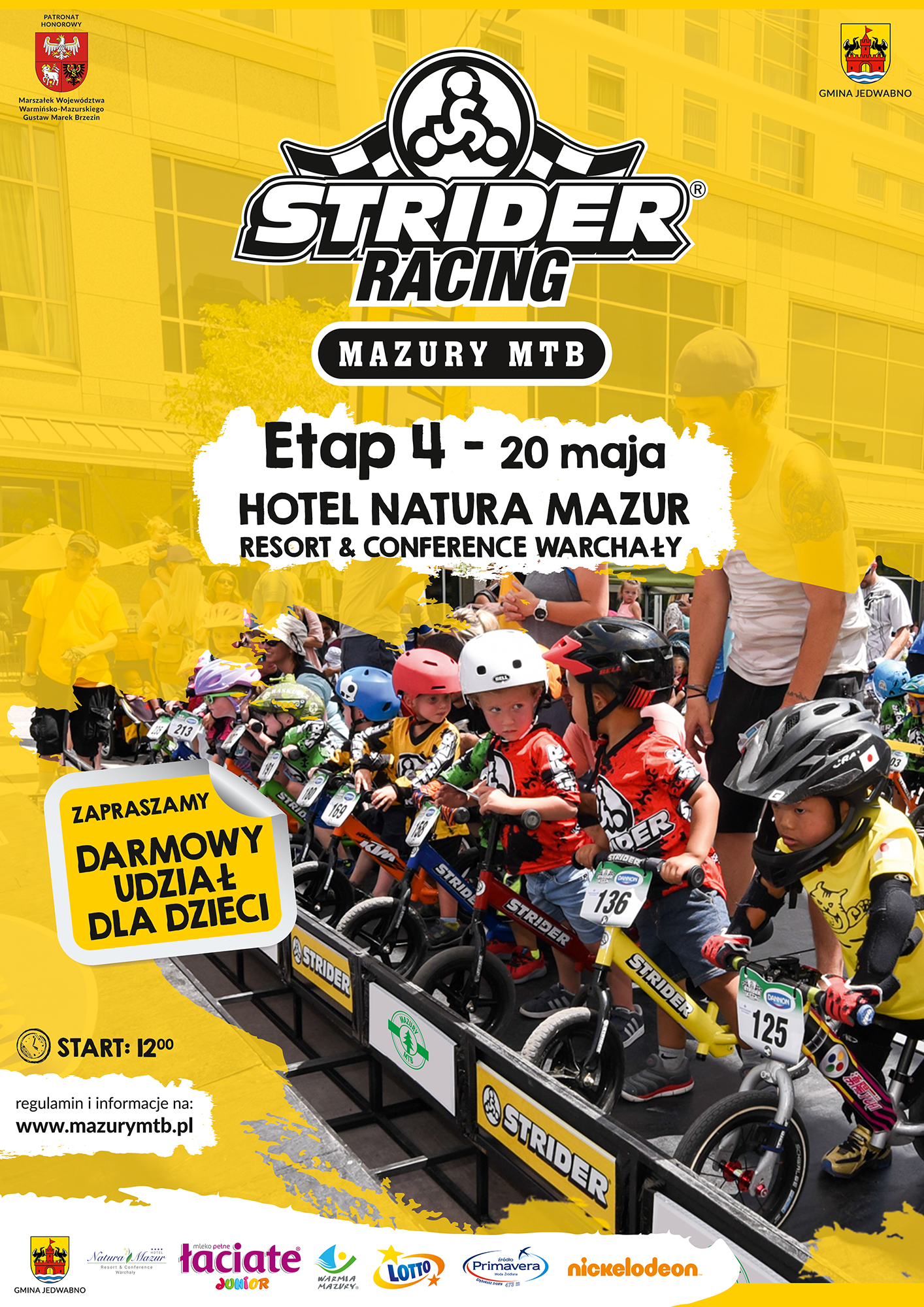W miejscowości Warchały nad jeziorem Świętajno znajduje się piękny, nowoczesny Hotel Natura Mazur. Trasa wyścigu prowadzi po najatrakcyjniejszych terenach Gminy Jedwabno. Baza wyścigu znajdować się będzie na terenie Hotelu Natura Mazur.