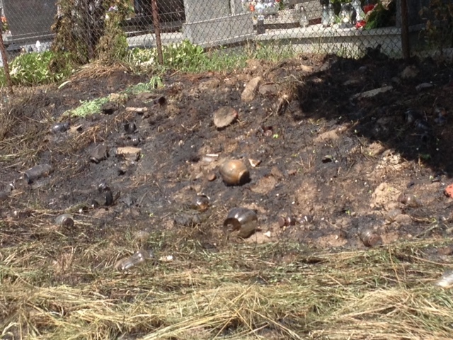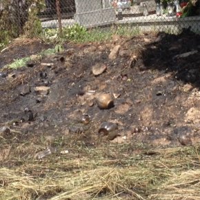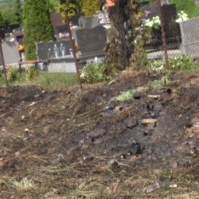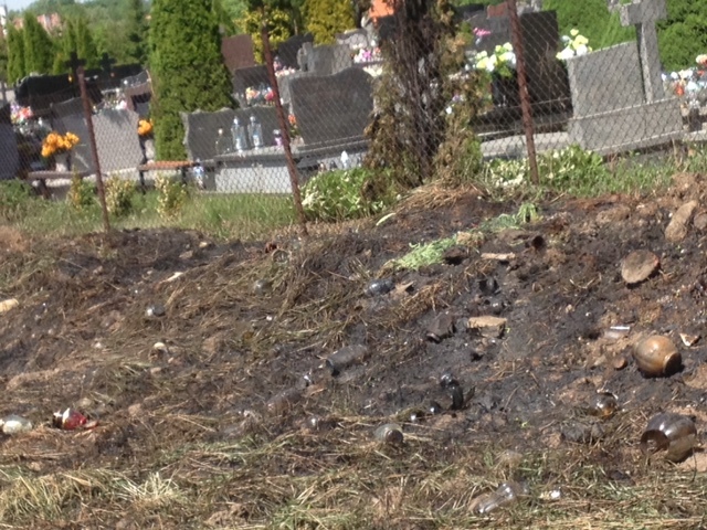 Na zdjęciach wykonanych już po pożarze widać dokładnie ilość śmieci, w dużej ilości zniczy, które wyrzucane są przez ogrodzenie na teren sąsiedniej działki.