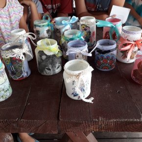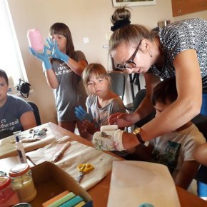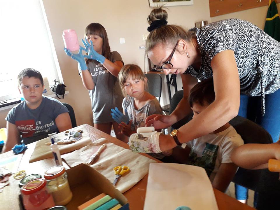 Zajęcia dla dzieci w ramach akcji „Wakacje z Gminą Jedwabno” trwają w najlepsze! Za nami zabawy kreatywne, zajęcia socjoterapeutyczne, ruchowe, a w tym tygodniu ruszyły zajęcia upcyklingowe.