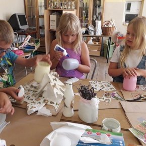 Za nami zajęcia uprecyklingowe, które poprowadzili pracownicy Urzędu Gminy Jedwabno. Miały one na celu pokazanie dzieciom przykładów domowego przetwarzania odpadów. Tydzień piaty, to zajęcia czytelnicze, na których nie zabraknie także nowoczesnych gier i zabaw. Prowadzącymi zajęcia są pracownice Gminnej Biblioteki Publicznej w Jedwabnie Aleksandra Krawczewska i Joanna Żmijewska. Zajęcia odbywają się zgodnie z harmonogramem: