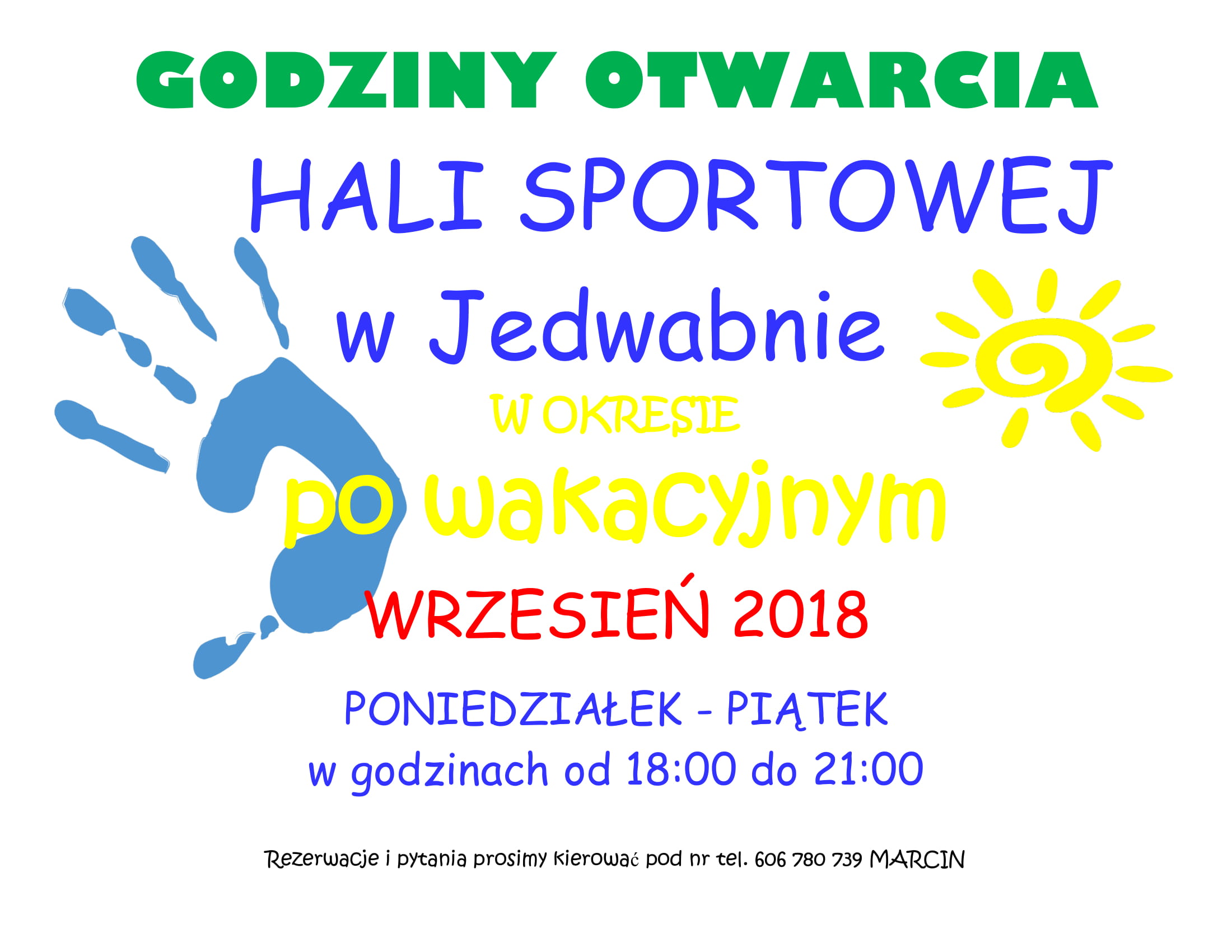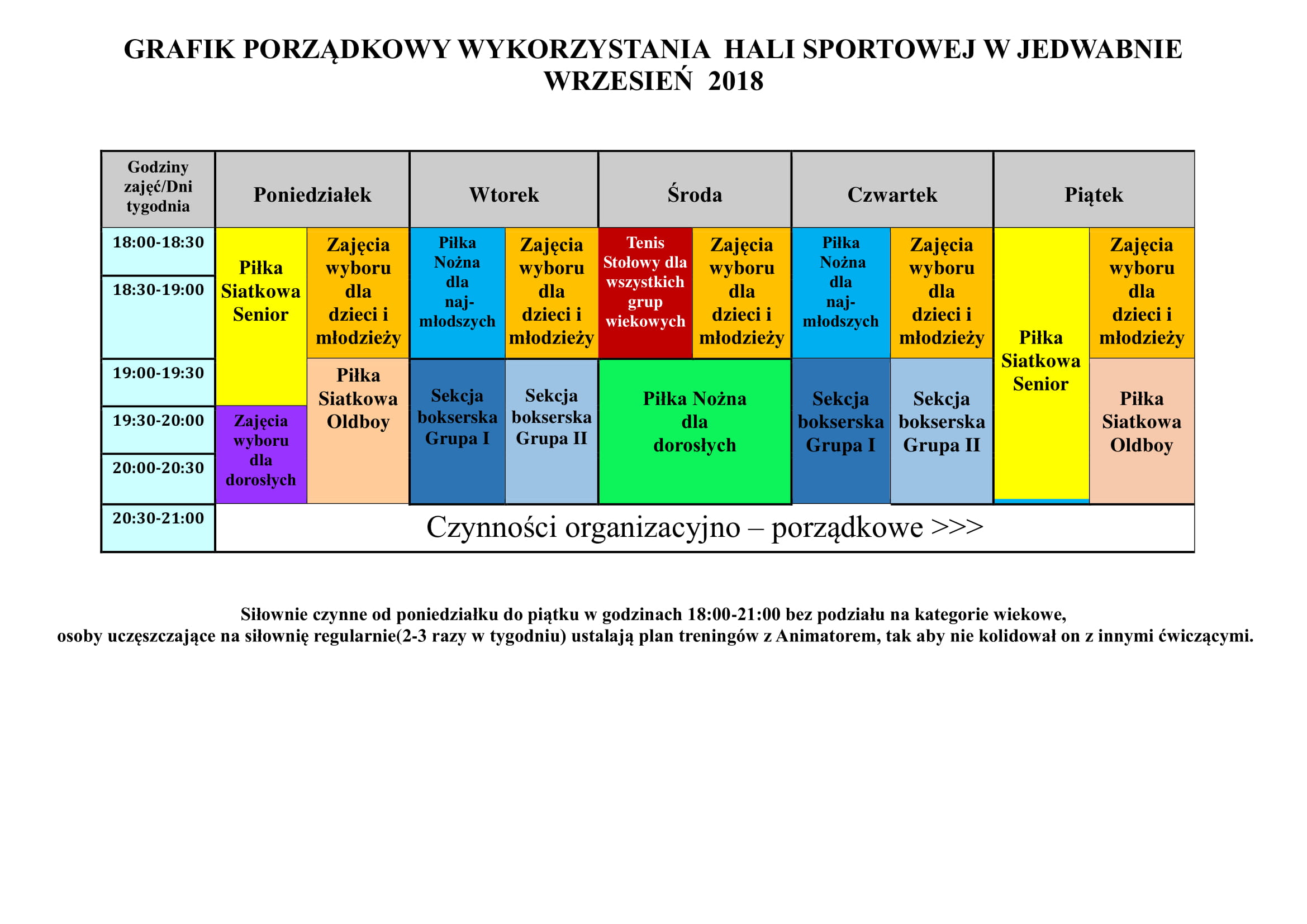 Grafik otwarcia Hali Sportowej od miesiąca września 2018 r.
