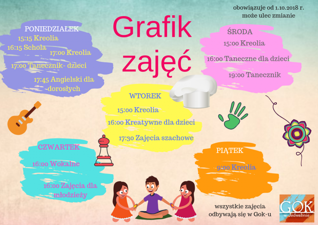 Grafik zajęć w Gminnym Ośrodku Kultury w Jedwabnie od 1 października 2018 r.