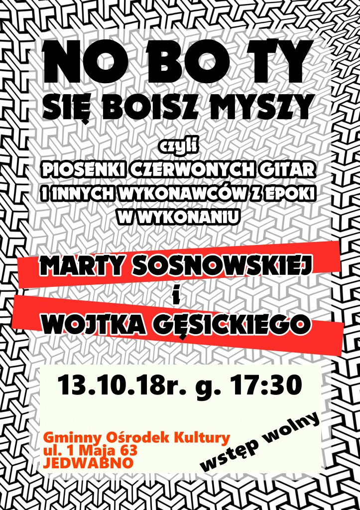 3. Zapraszamy na koncert piosenek „Czerwonych Gitar” do GOK w Jedwabnie