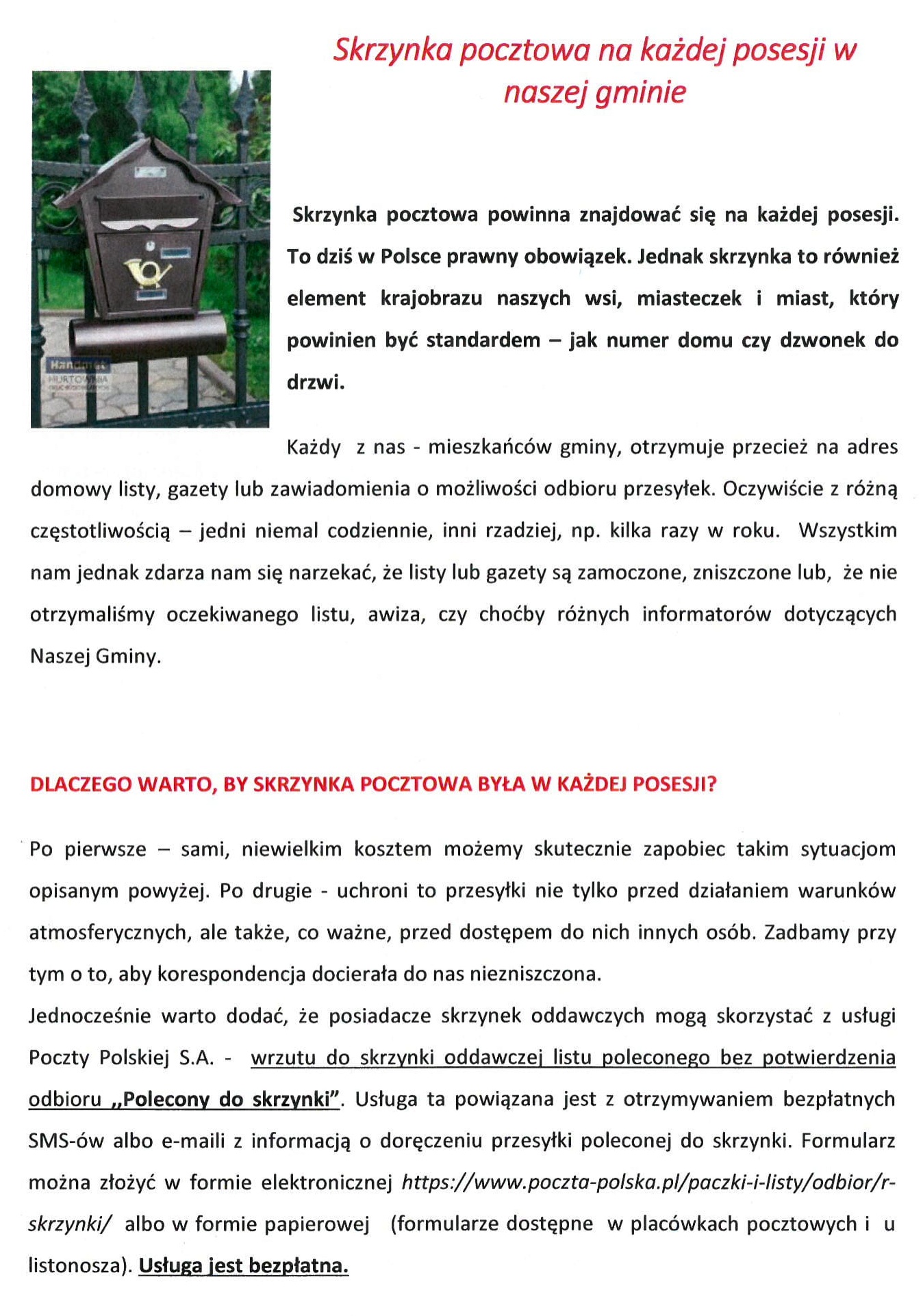 3. Skrzynka pocztowa na każdej posesji w naszej gminie