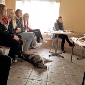 Wolontariusze i opiekunowie z Przytuliska mieli okazję skorzystania z instruktażu dotyczącego szkolenia psów. Szkoleniowiec Magda Biadoń od 2011 roku prowadzi olsztyński oddział Szkoły dla Psów DogPoint. Z wykształcenia jest zootechnikiem, z zamiłowania zoopsychologiem i instruktorem szkolenia psów. Spośród wielu aktywnych kursów prowadzi również konsultacje behawioralną, z której wolontariusze i opiekunowie z Przytuliska w Jedwabnie skorzystali.