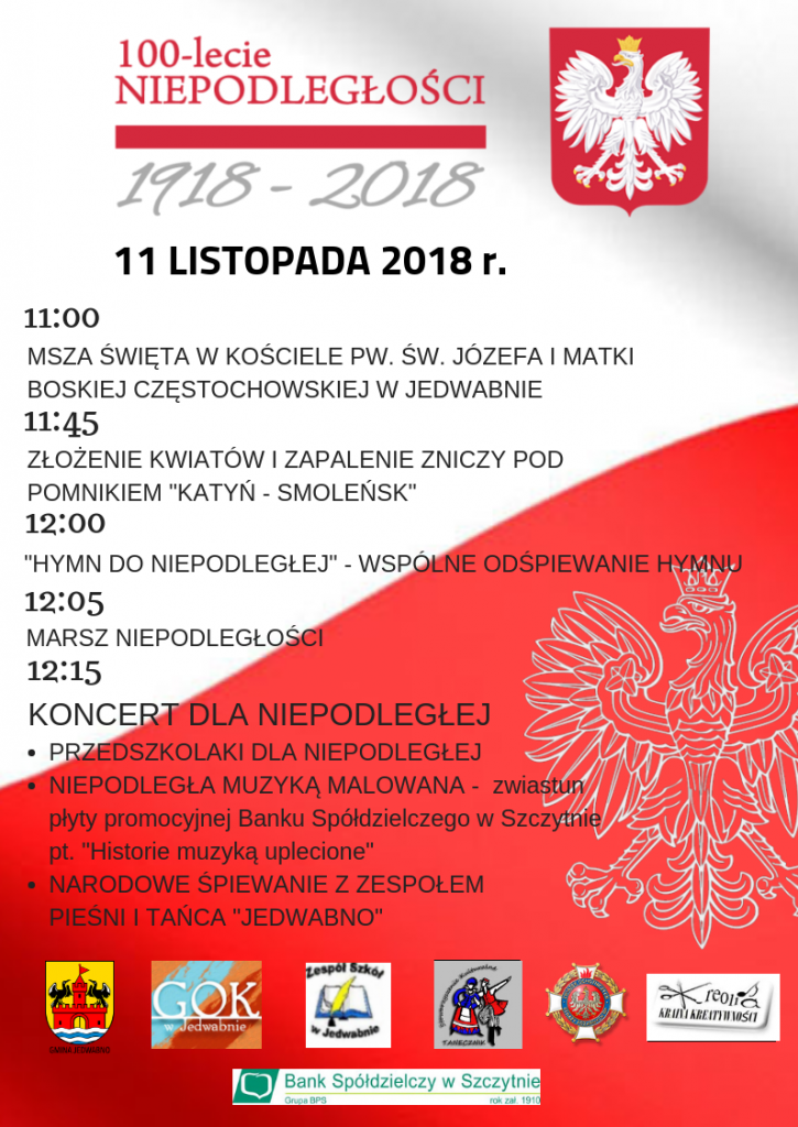 Szanowni Państwo, już w najbliższą niedzielę obchodzimy Święto Niepodległości. Sprawmy więc żeby ten dzień był wyjątkowy. Zapraszamy do udziału we wspólnym świętowaniu.