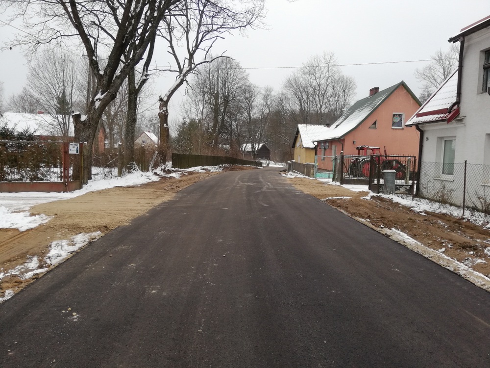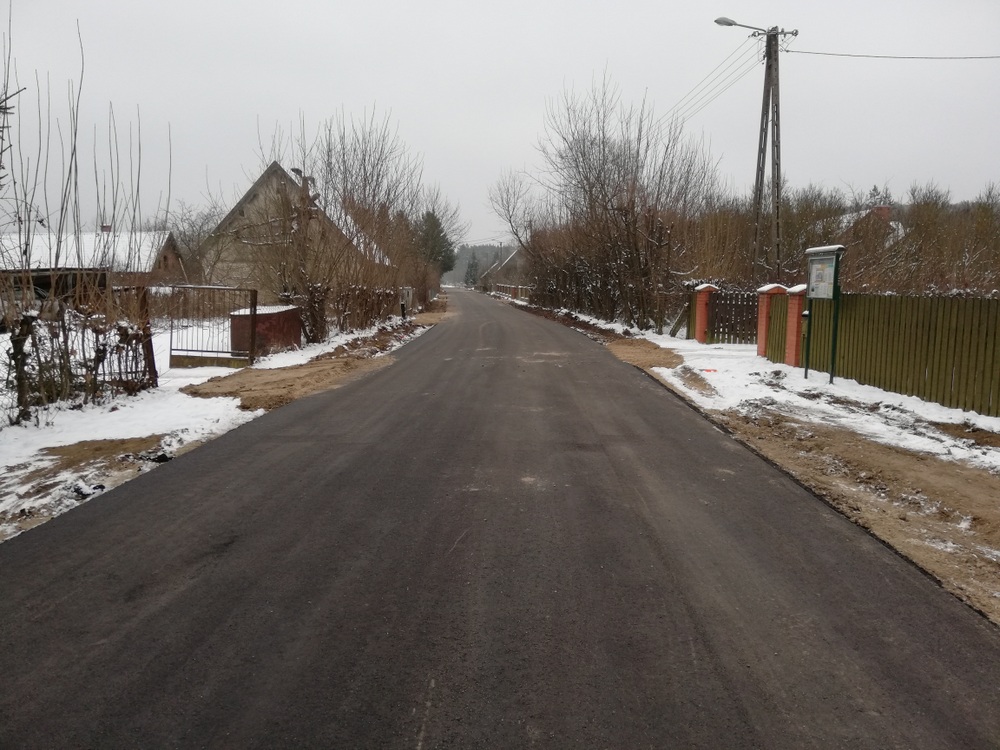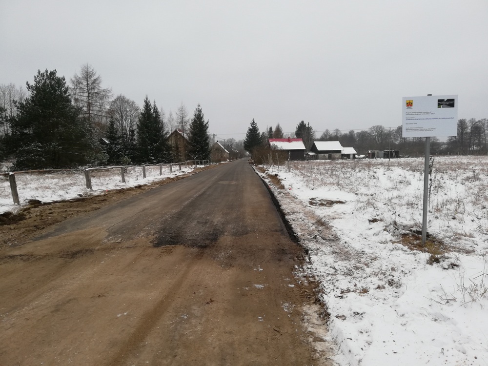 W ramach zadania przebudowana została droga położona na działkach nr 218/7 i 218/8, biegnąca od skrzyżowania z drogą powiatową w kierunku tzw. „poligonu”, to łącznie 407 m. nowej nawierzchni.