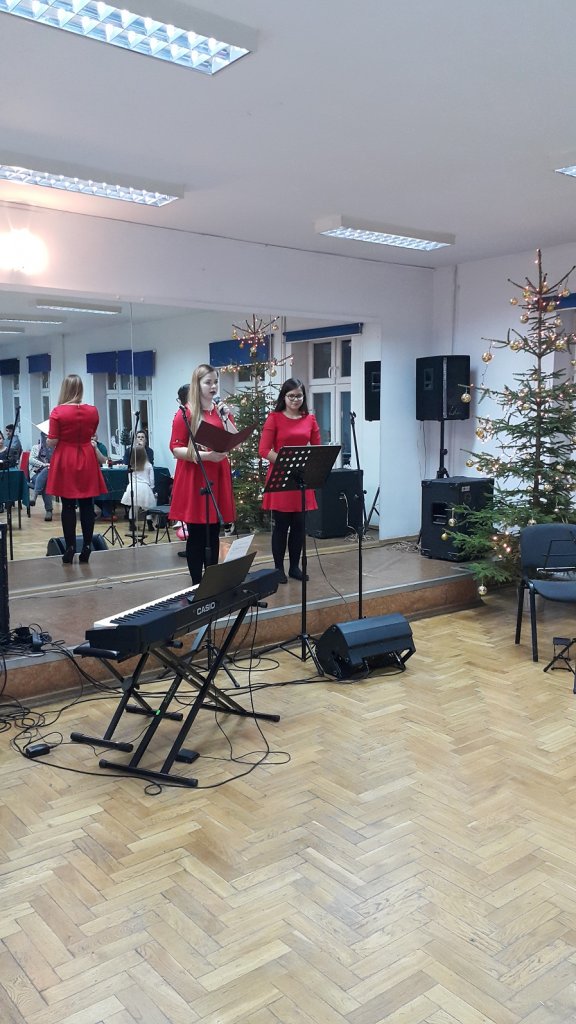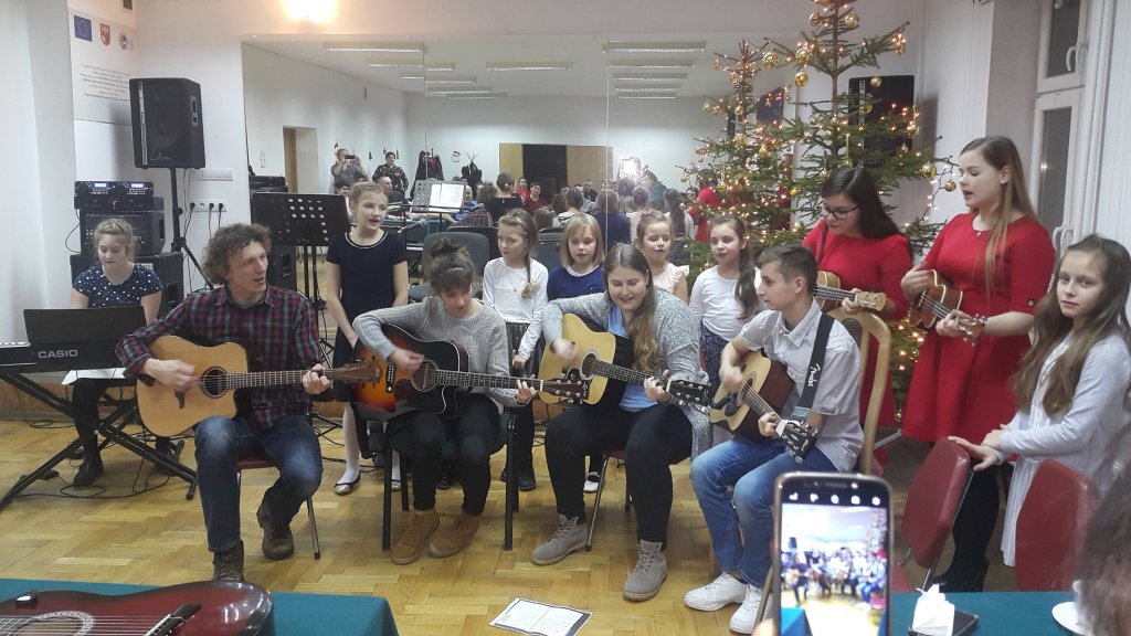 Zwieńczeniem spotkania było wspólne odśpiewanie kolędy „ Przybieżeli do Betlejem”. Instruktorami prowadzącymi zajęcia byli: Barbara Gnoza, Tomasz Banul, Arkadiusz Górski.