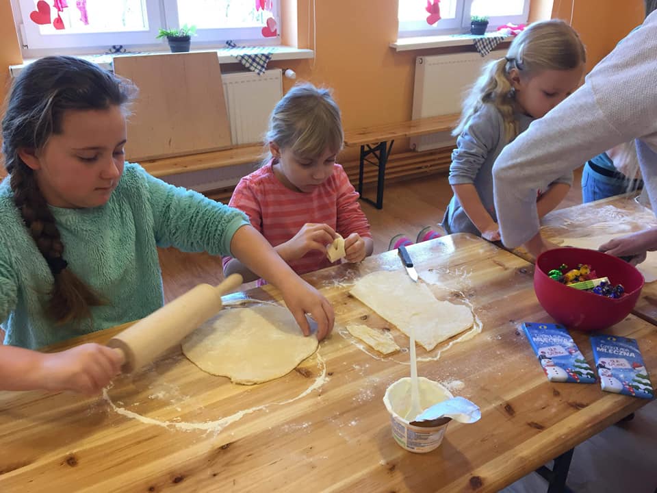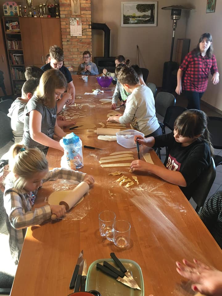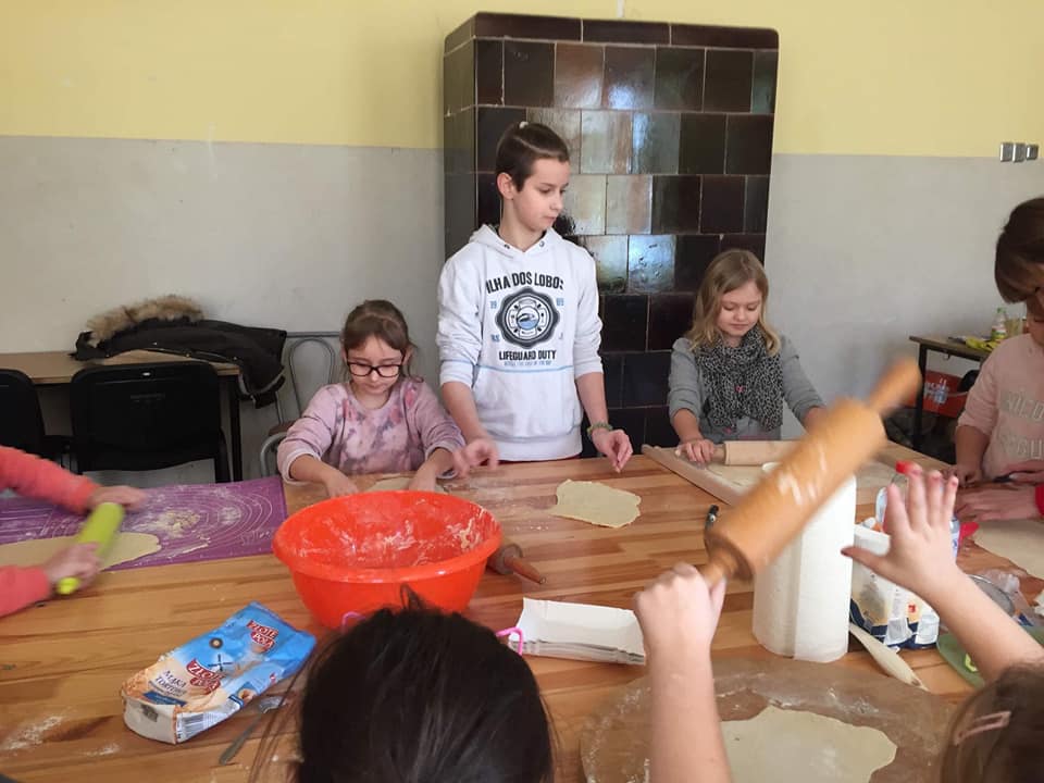 Kulinarnie, karnawałowo i bez nudy! Tak spędzały pierwszy tydzień ferii zimowych dzieci i młodzież z Gminy Jedwabno. A wszystko dzięki inicjatywie animatorek Gminnego Ośrodka Kultury w Jedwabnie, które dotarły do ośmiu świetlic na terenie Gminy Jedwabno. Uczestnicy zajęć mięli okazję wykazać się znajomością karnawałowych wypieków oraz ich przygotowaniem. Z wielkim zapałem wyrabiali i wałkowali ciasto, z którego potem wykrawali faworki. Wszyscy obecni na zajęciach mogą potwierdzić, że faworki wyszły znakomicie, o czym świadczą zadowolenie dzieci i ich pełne brzuszki. W zajęciach łącznie wzięło udział około 60 uczestników.