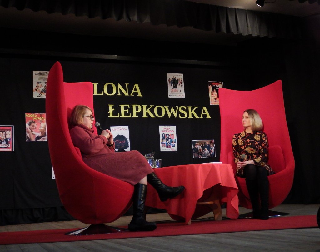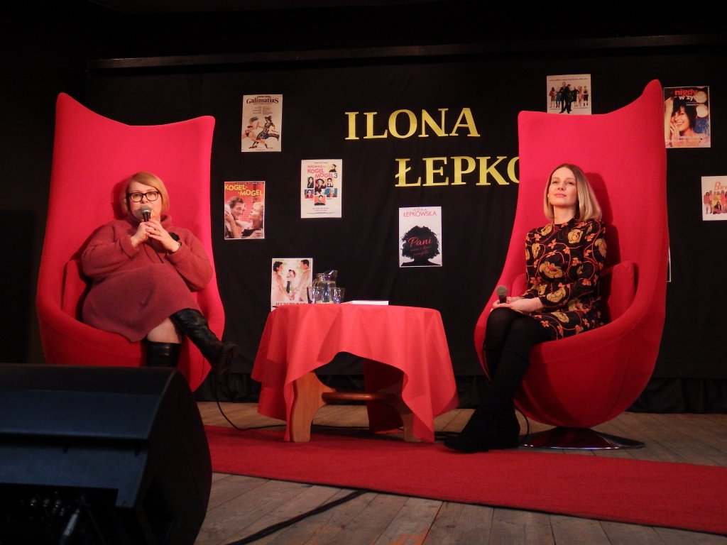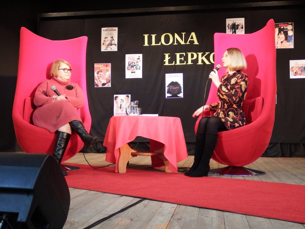 Podczas spotkania, które ze scenarzystką poprowadziła Katarzyna Ciak, Pani Ilona opowiadała o swoim życiu zawodowym, prywatnym, a także o marzeniach i planach literackich. Zdradziła, że nie potrzebuje specjalnych warunków do pisania scenariuszy „…to moja praca, siadam i piszę nie czekam na wenę” wyznała. Tak też właśnie powstała część scenariusza do filmu „Miszmasz czyli Kogel Mogel 3” to znaczy podczas prywatnej podróży pociągiem do Wiednia. Choć Ilona Łepkowska jest najbardziej rozpoznawalną twarzą polskich scenarzystów to, jak się okazuje, nie zawsze ma wpływ na losy bohaterów. Ogromne salwy śmiechu wywołała anegdota, która zresztą jest bardzo prawdziwa, a mianowicie autorka powiedziała „Nie ja zabiłam Hankę Mostowiak w kartonach. To nie ja!„. Autorka bardzo ciekawie opowiadała o kulisach pracy przy produkcjach filmowych, jak i serialowych, o doborze aktorów i pracy z nimi. Mówiła o tym, że ludzie czasami proszą ją aby ich ulubionym bohaterom nie zdarzało się zbyt wiele przykrych sytuacji, ale jednocześnie aby serial był ciekawy i wzbudzał emocje. Swoistym podsumowaniem tego tematu były słowa Hitchcock’a przytoczone przez Panią Ilonę „Film to jest życie z którego wymazano plamy nudy„. Fanów twórczości Łepkowskiej ucieszyły informacje, że właśnie powstaje książka, o jak to autorka ujęła „wstrętnej reżyserce/scenarzystce, zołzie wyjątkowo paskudnej„. Na tę publikację warto czekać, gdyż literatka dodała, że ma wyjątkową frajdę, jakiej dawno nie miała z pisania książki.