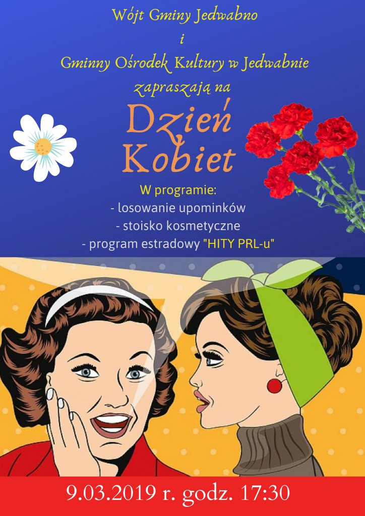A gdyby tak Dzień Kobiet trwał dwa dni? Drogie Panie, 9 marca to także Wasz dzień!!! Celebrujcie go razem z Nami. Zapraszamy do Gminnego Ośrodka Kultury w Jedwabnie.