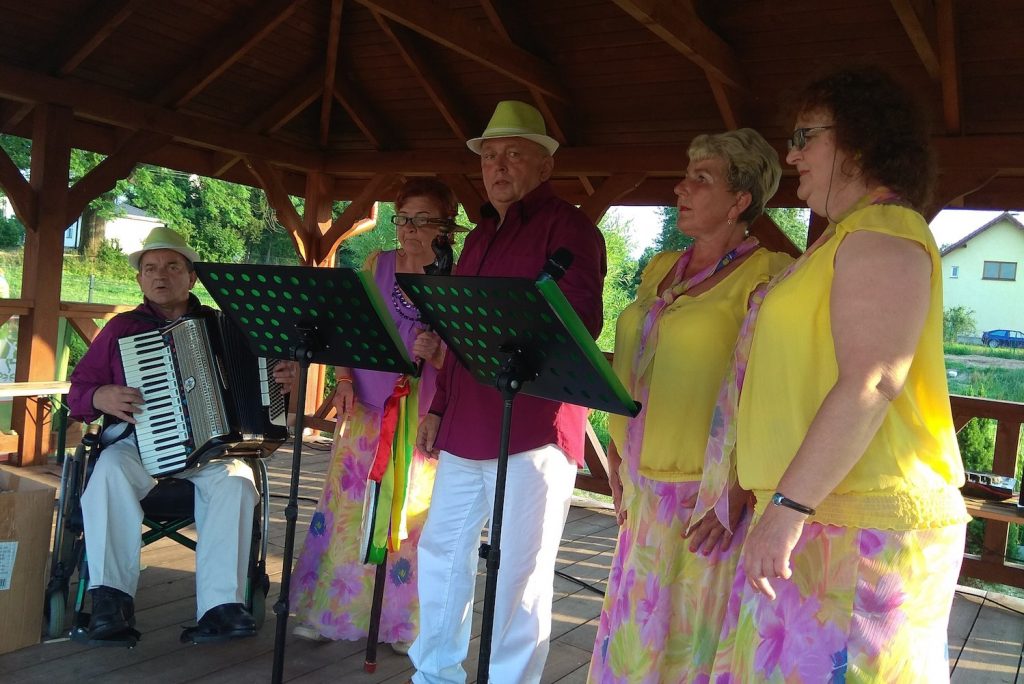 Podczas tegorocznego festynu po raz kolejny gościliśmy grupę „Rumcajsss Team” na czele z Łukaszem „Rumcajsem” Matuszczak. Grupa, od kilku lat zaprzyjaźniona z gminą Jedwabno, na co dzień zajmuje się profesjonalnym kibicowaniem podczas ogólnopolskich i światowych wydarzeń siatkówki plażowej. Ekipa zademonstrowała gościom animacje przeniesione wprost z siatkarskich trybun do Waplewa. Ponadto na scenie zaprezentował się zespół śpiewaczy „Nadzieja”, a o pełne brzuchy gości zadbały lokalne gospodynie, które przez cały wieczór serwowały swojskie przysmaki.