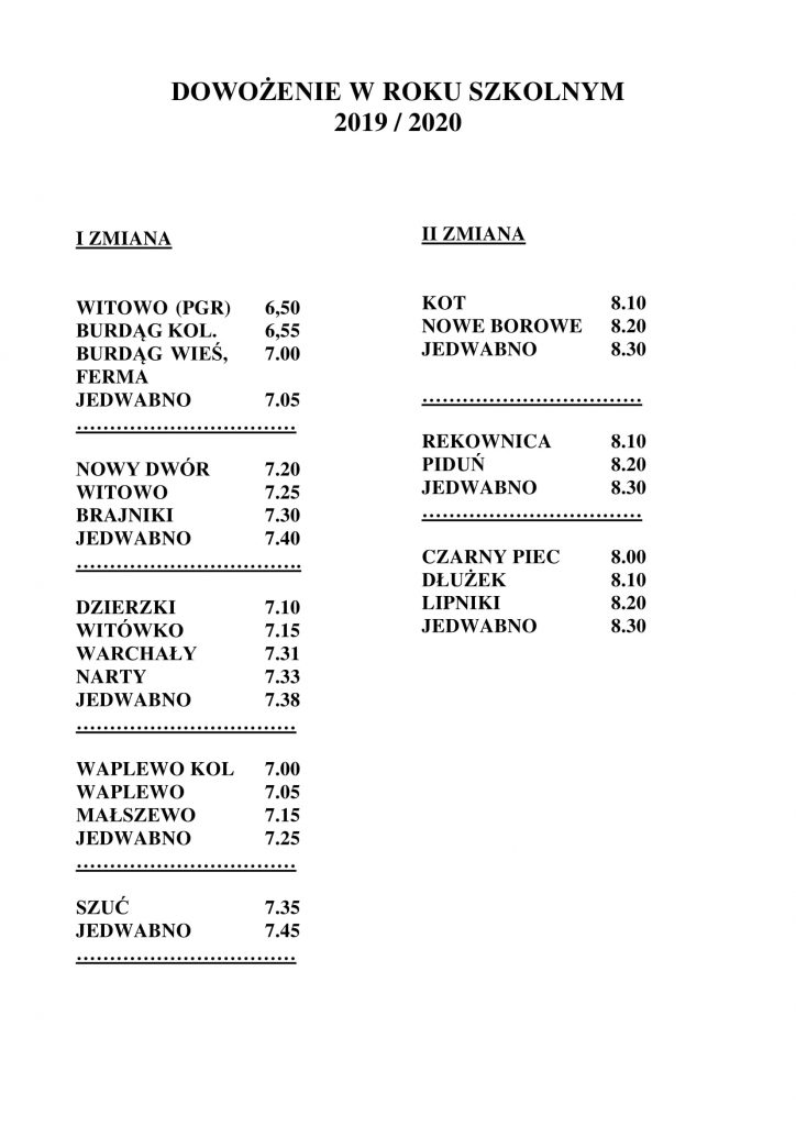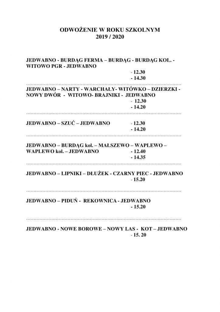 3. Dowożenie od dnia 04.09.2019 r. do Zespołu Szkół w Jedwabnie
