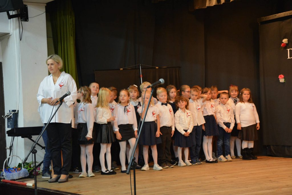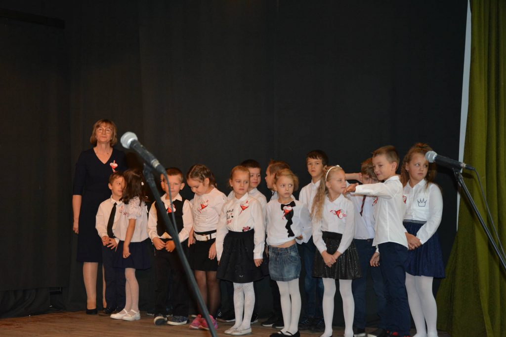 W części oficjalnej uwagę widzów pochłonęły urocze pierwszaki, które zostały uroczyście pasowane na uczniów. Wcześniej, pod czujnym okiem wychowawczyń- Jadwigi Niebrzydowskiej i Marianny Żelaznowskiej, zaprezentowały popisy wokalne oraz taneczne.