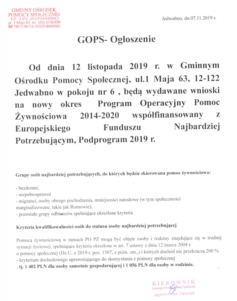 • Gminny Ośrodek Pomocy Społecznej w Jedwabnie