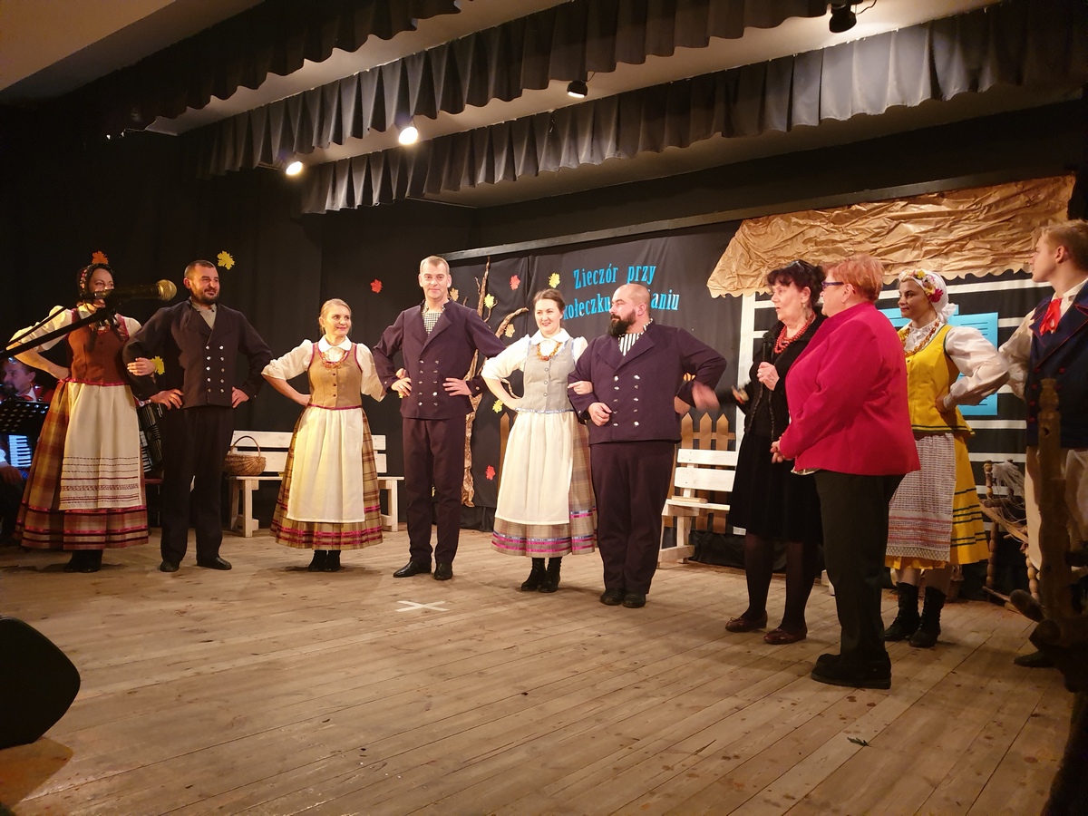 W sobotę 23.11.2019 roku w Gminnym Ośrodku Kultury w Jedwabnie Stowarzyszenie Kulturalne „Tanecznik” podsumowało swoje działania podczas przedsięwzięcia „Zieczór przy kołeczku i bajaniu”. Podczas programu zaprezentował się Zespół Pieśni i Tańca Jedwabno oraz dziecięcy zespół JEDWABNO jako podsumowanie projektu „Dziedzictwo kultury ludowej. Zajęcia taneczno-wokalane dla dzieci i młodzieży”. Gości powitał Wójt Gminy Jedwabno Pan Sławomir Ambroziak. Uczestnicy uroczystości mogli zapoznać się także z wyglądem strojów mazurskich, które szczegółowo omówiła Pani Teresa Sidor oraz Pani Anna Sarnowska. Dodatkową atrakcją był Minikiermasz świąteczny, gdzie swoje piękne rękodzieło wystawili członkowie SK TANECZNIK.
