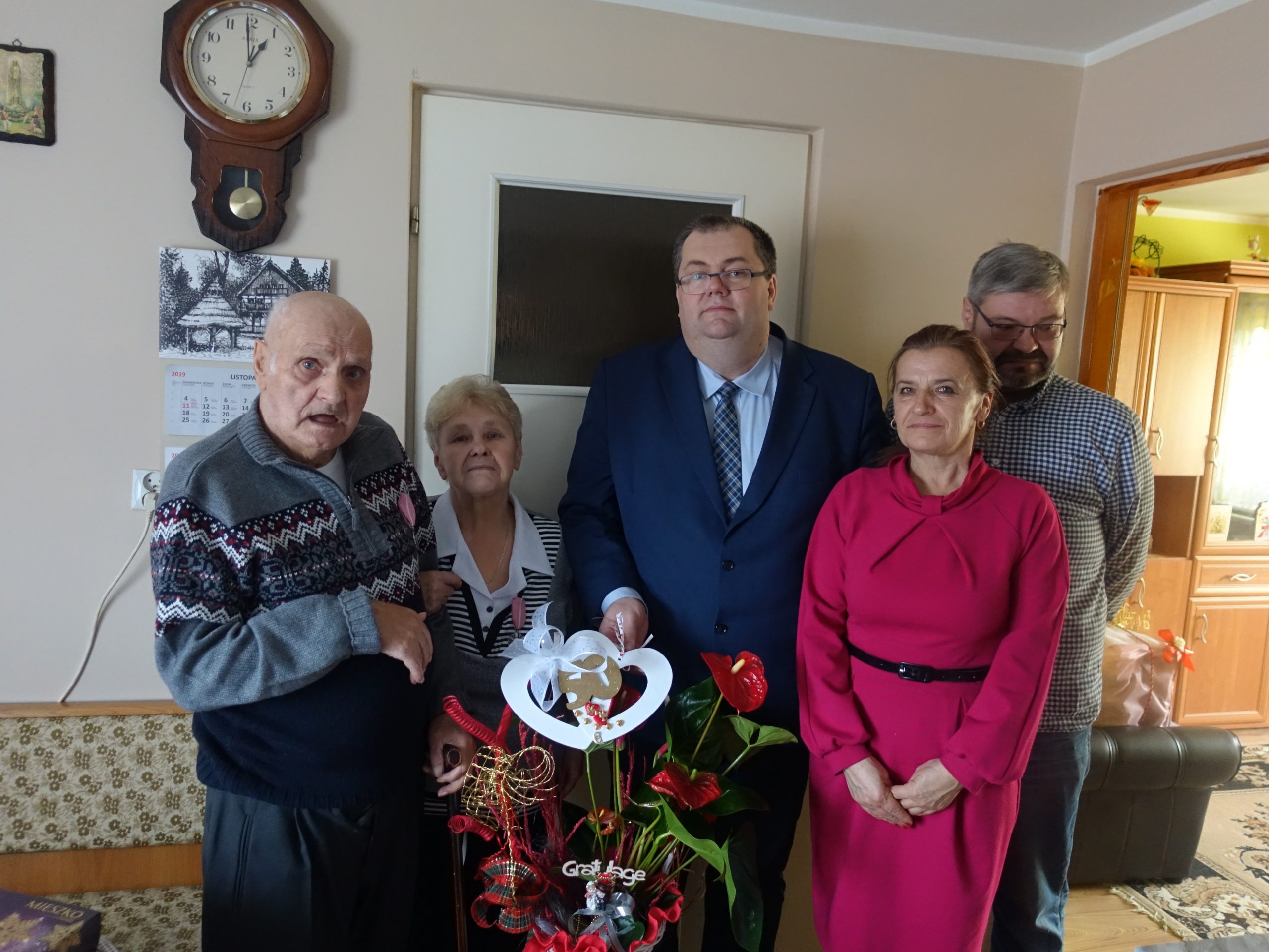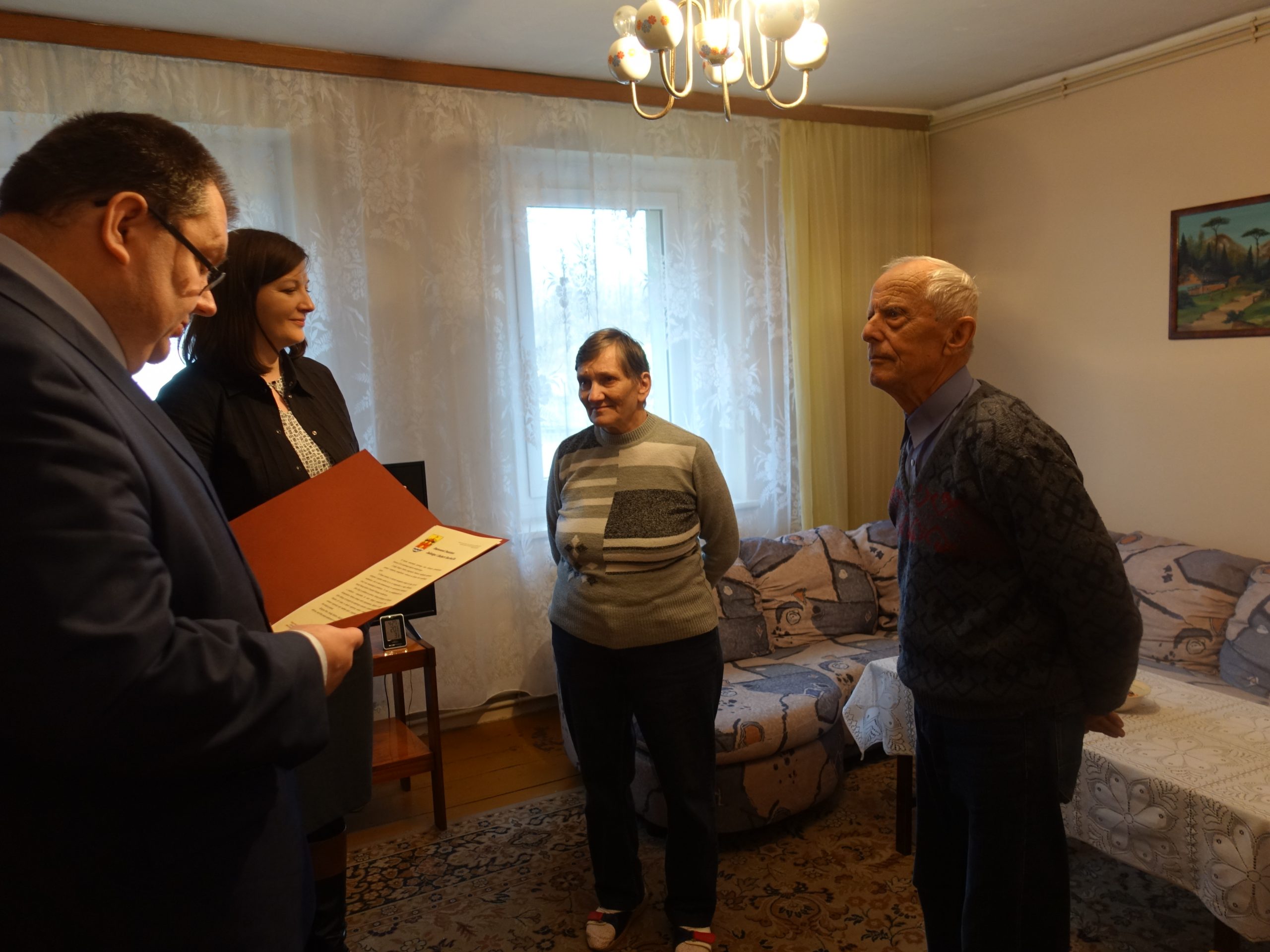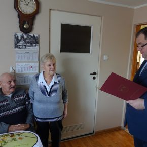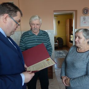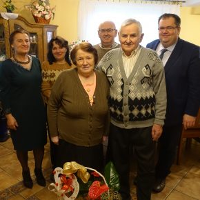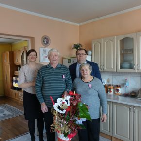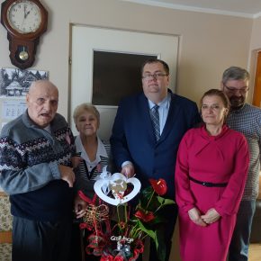 Wójt Gminy Sławomir Ambroziak, Pani Przewodnicząca Rady Gminy Elżbieta Brzóska, Pani Elżbieta Katarzyna Koperska – zastępca kierownika USC odwiedzili jubilatów.