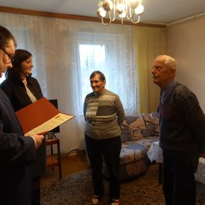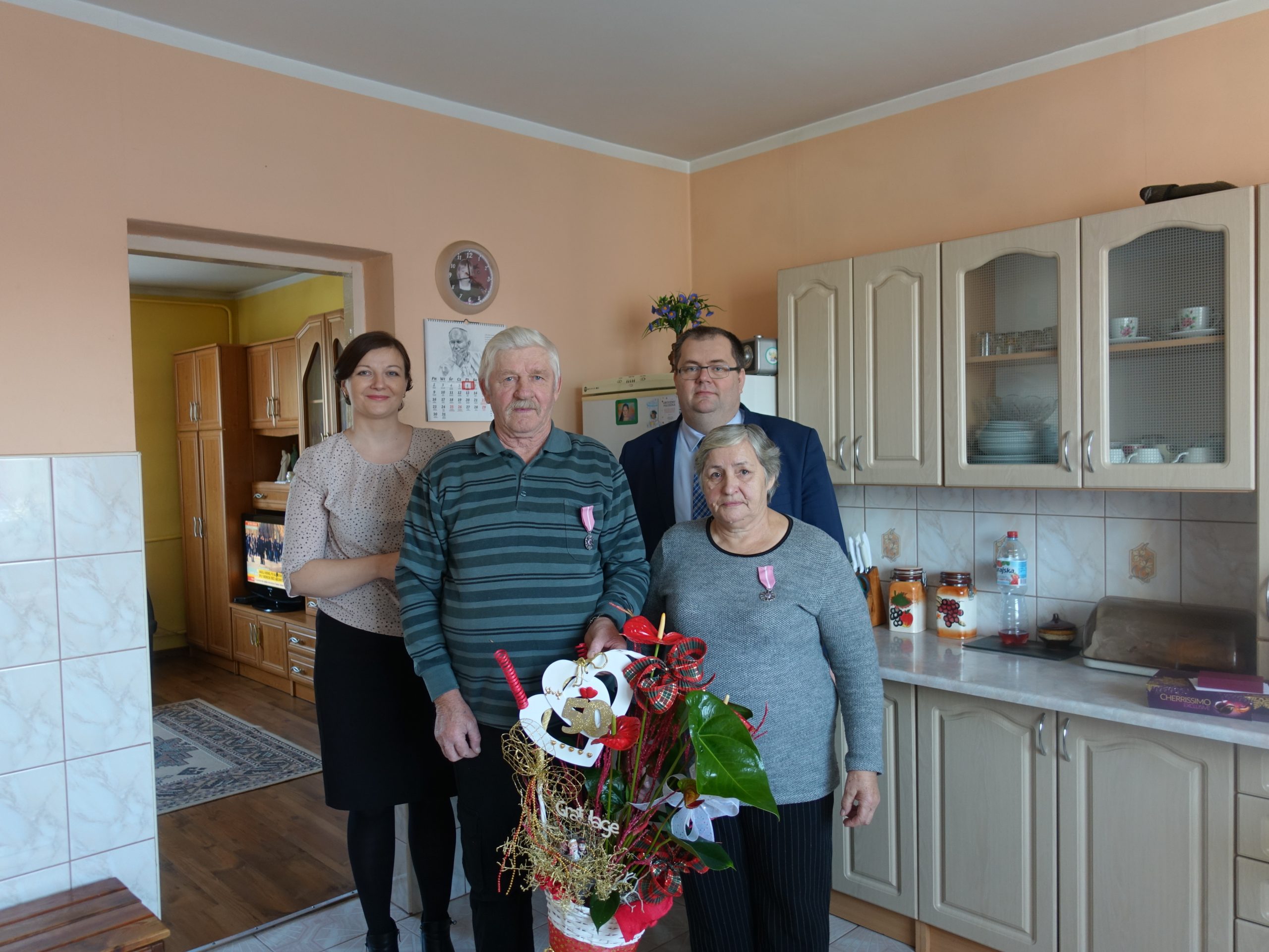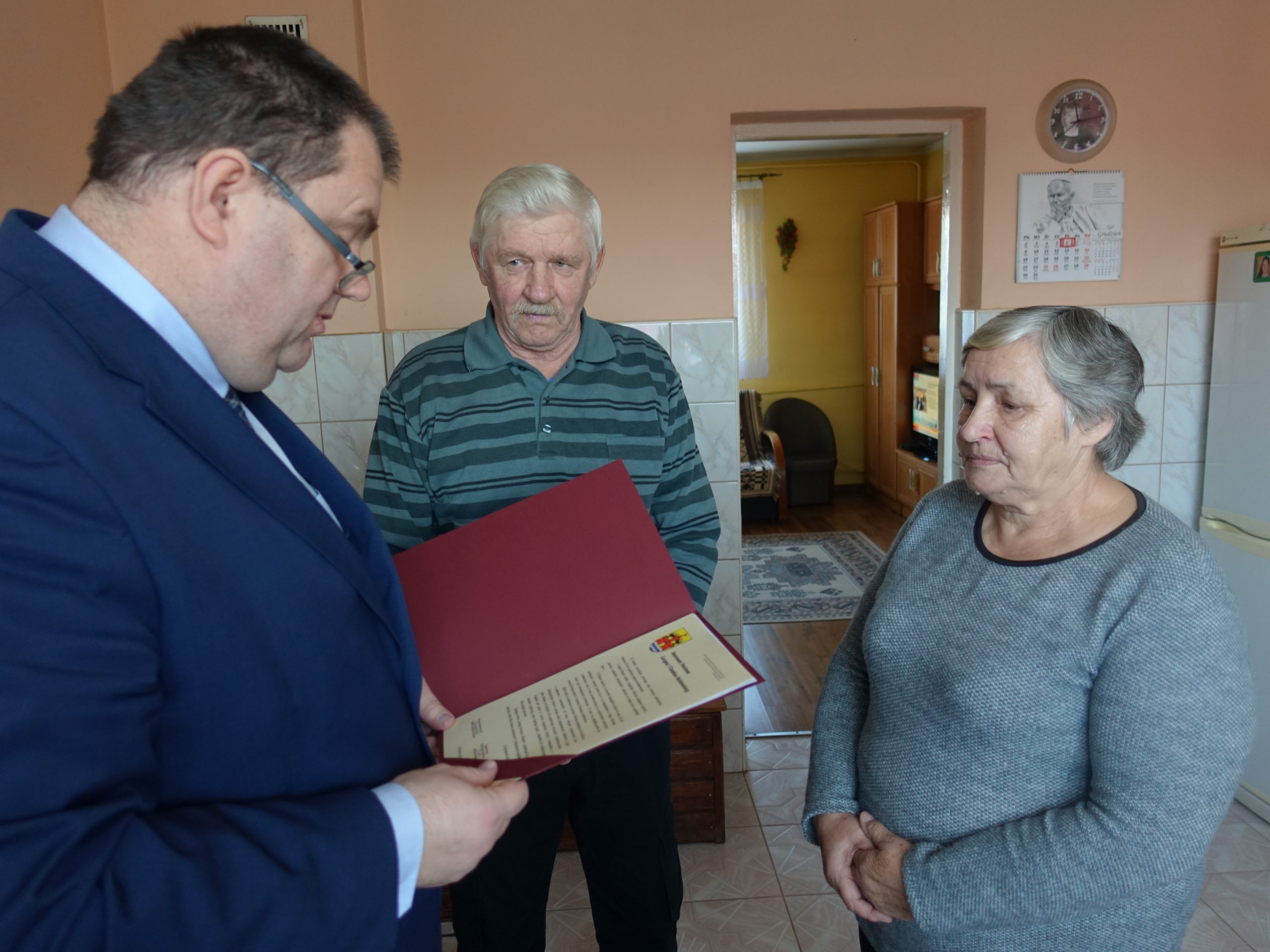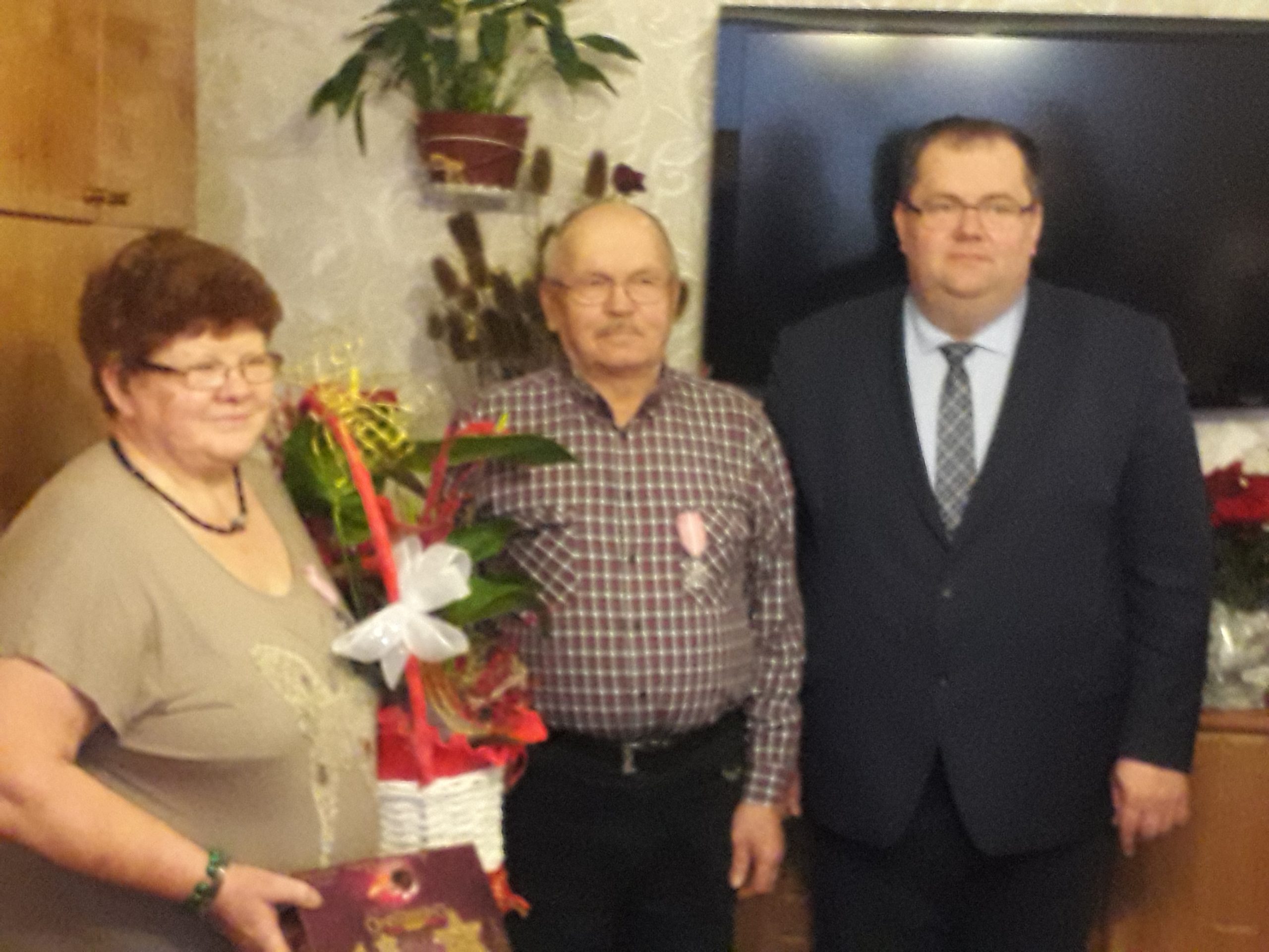 Wójt Gminy Sławomir Ambroziak, Pani Przewodnicząca Rady Gminy Elżbieta Brzóska, Pani Elżbieta Katarzyna Koperska – zastępca kierownika USC odwiedzili jubilatów.
