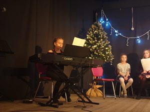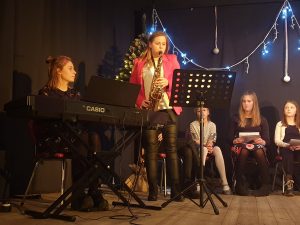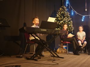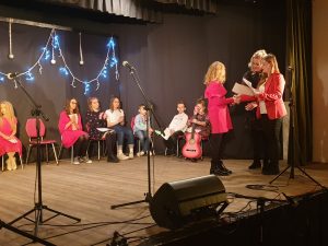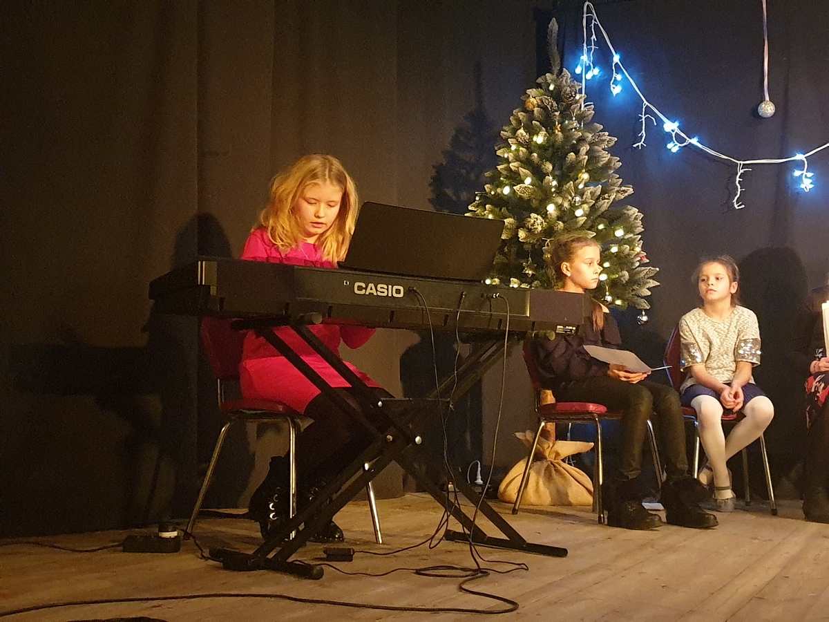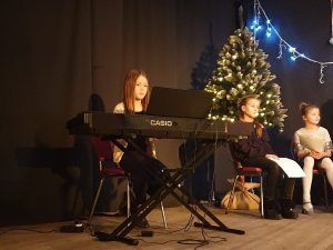 W czwartek 19 grudnia w Gminnym Ośrodku Kultury w Jedwabnie odbyła się wyjątkowa uroczystość. Już od wielu lat Gmina Jedwabno działa wspólnie z Fundacją „Kreolia” Kraina Kreatywności, która prowadzi w Gminnym Ośrodku Kultury w Jedwabnie zajęcia wokalne oraz gry na instrumentach. Własnie tego wieczoru podopieczni fundacji mieli możliwość zaprezentowania swojej pracy. Niezmiennie instruktorami, którzy prowadzą dzieci uczęszczające na zajęcia to Pani Barbara Gnoza – Wawrzynkiewicz, Tomasz Banul oraz Arkadiusz Górski. Występy poprzedziło rozdanie certyfikatów dla wszystkich uczniów „Kreoli”, które wraz z instruktorami wręczyła Pani Joanna Polniak przedstawiciel fundacji. Życzenia świąteczne zebranym gościom złożył Wójt Gminy Jedwabno Pan Sławomir Ambroziak życząc wszystkim zdrowia, zadowolenia i sukcesów z podjętych wyzwań. Na scenie zaprezentował się także nowy zespół „3M” działający w Gminnym Ośrodku Kultury pod okiem Pana Jerzego Pałasza, w skład którego wchodzą Marysia Wyszyńska, Marysia Pyrzanowska, Marysia Kulas. Gościem wieczoru był zespól MazurKids ze Szczytna, który prowadzi Katarzyna Hain „Stashka”. W sali tanecznej przygotowany został poczęstunek przez Sołectwo Jedwabno, a także swoje specjały zaprezentowała „Dietetyczna Chatka” ze Szczytna.