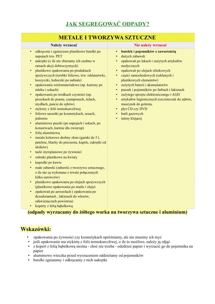 Aktualizacja ulotki segregacja 2020