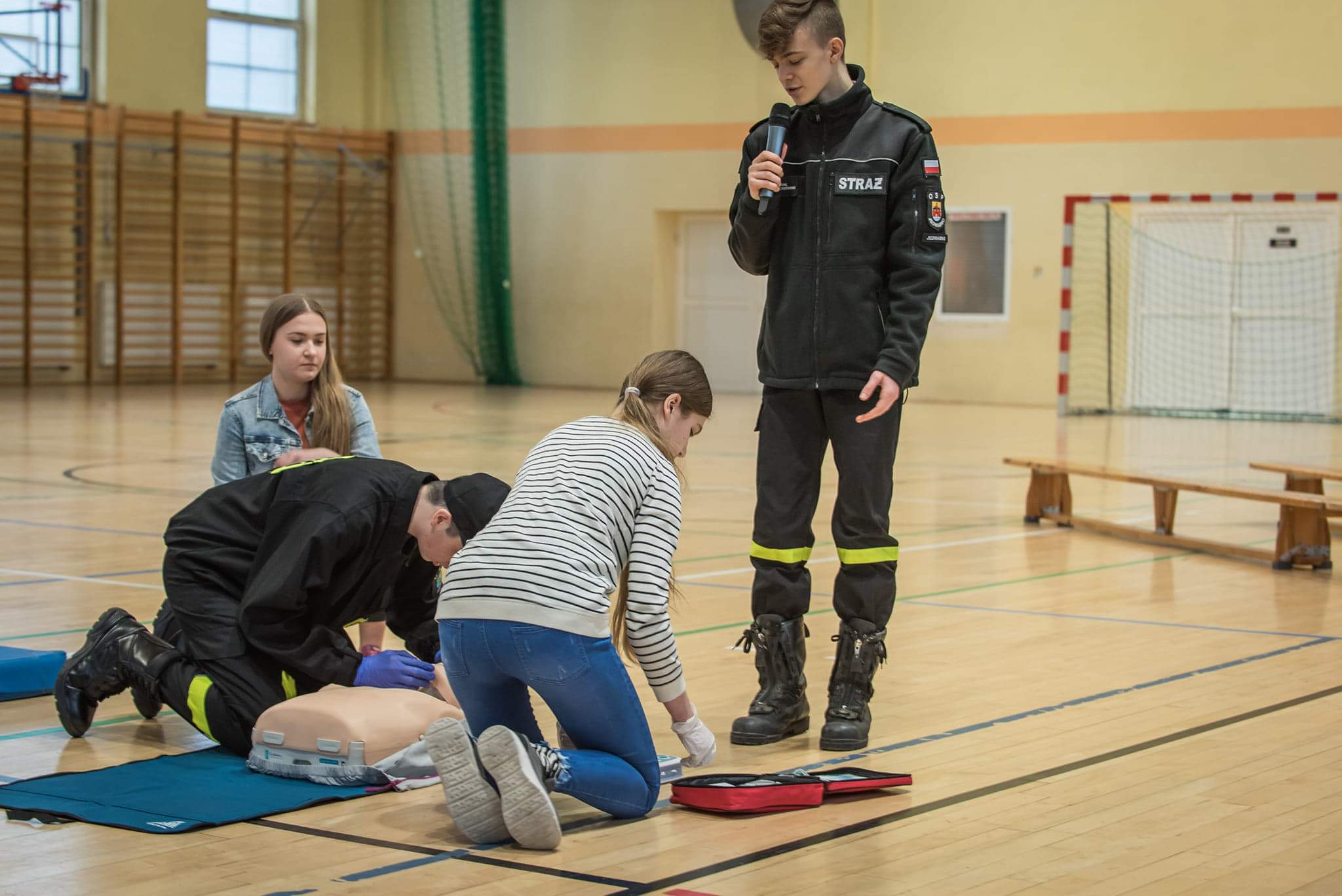 W dniu 21.02.2020 roku w Zespół Szkół nr 3 im. Jana III Sobieskiego w Szczytnie odbyła się akcja edukacyjna pt. „Ratujemy i Uczymy Ratować”. Wydarzenie organizowane było przez grupę Niepokonani, działająca przy Gminnej Bibliotece Publicznej w Jedwabnie w ramach projektu Równać Szanse, przy pomocy Ochotniczej Straży Pożarnej w Jedwabnie oraz Komendy Powiatowej Państwowej Straży Pożarnej w Szczytnie. Na miejsce przybył także zaproszony Wójt Gminy Jedwabno – Pan Sławomir Ambroziak. Akcja miała na celu promowanie podstawowych zasad bezpieczeństwa oraz pierwszej pomocy.