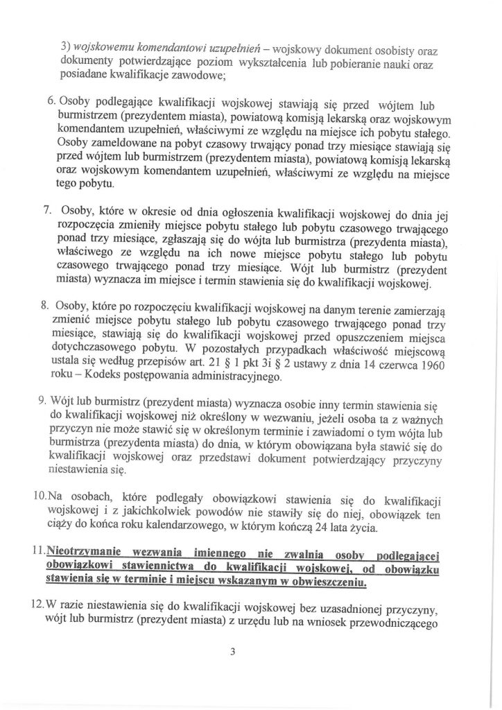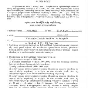 3. Obwieszczenie Wojewody Warmińsko – Mazurskiego o przeprowadzeniu kwalifikacji wojskowej w 2020 roku