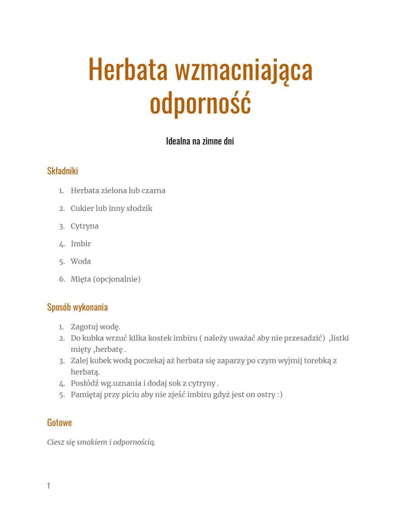 Prezentujemy Państwu bardzo fajny pomysł propozycja od Zwycięzcy programu MasterChef Junior – Bartek Kwiecień – specjalnie dla Was- przesyła przepis na HERBATĘ WZMACNIAJĄCĄ ODPORNOŚĆ❗️❗️