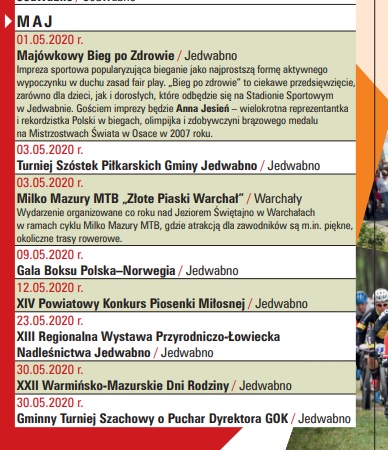 w związku z epidemią koronawirusa odwołujemy imprezy i wydarzenia, które zaplanowane były na miesiące kwiecień i maj 2020 roku, a ich daty opublikowane w Kalendarzu Imprez Gminy Jedwabno.