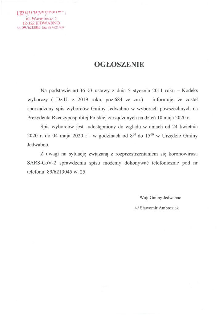 Urząd Gminy w Jedwabnie ul. Warmińska 2, tel. 89/6213045, fax. 6213094, |ug@jedwabno.pl
