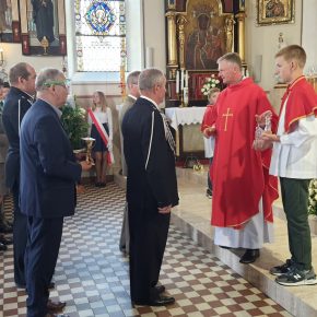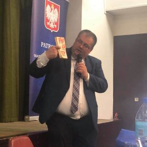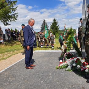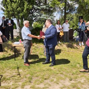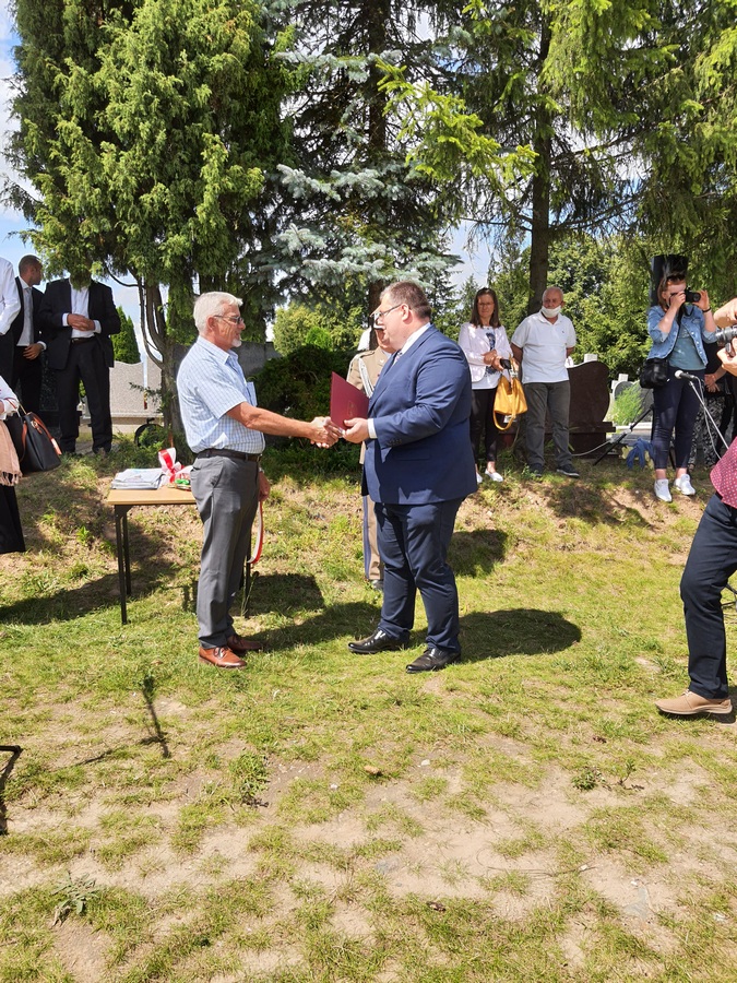 Wójt Gminy Jedwabno Pan Sławomir Ambroziak wręczył podziękowanie wykonawcy pomnika Panu Sławomirowi Sobolewskiemu.