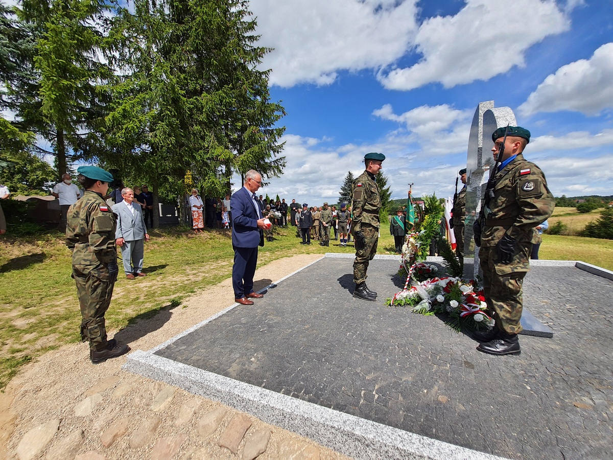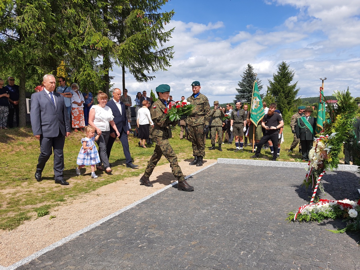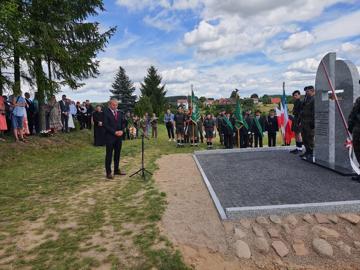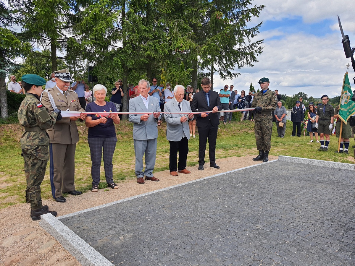 Wstęgę odsłaniającą pomnik przecięli Przedstawiciel Wojewody Warmińsko – Mazurskiego do spraw Kombatantów i Osób Represjonowanych Pan Władysław Kałudziński, Świadek Historii Józef Januszkiewicz i Pani Jadwiga Senderowska, Pan Daniel Kaźmierczak oraz Generał Dywizji Wojska Polskiego Pan Lech Stefaniak. Pomnik poświęcił ksiądz Roman Lompa, a przybyłe delegacje złożyły znicze i kwiaty.