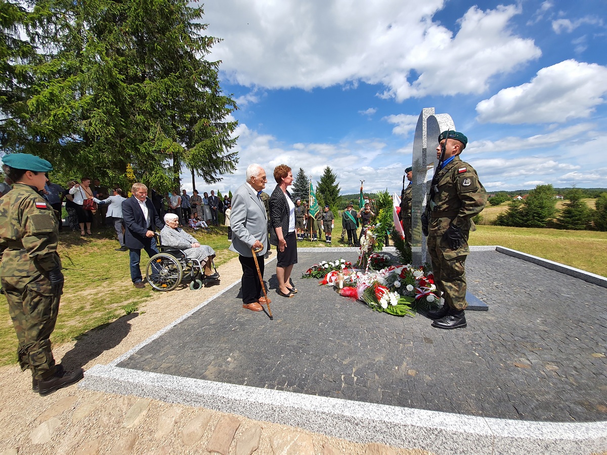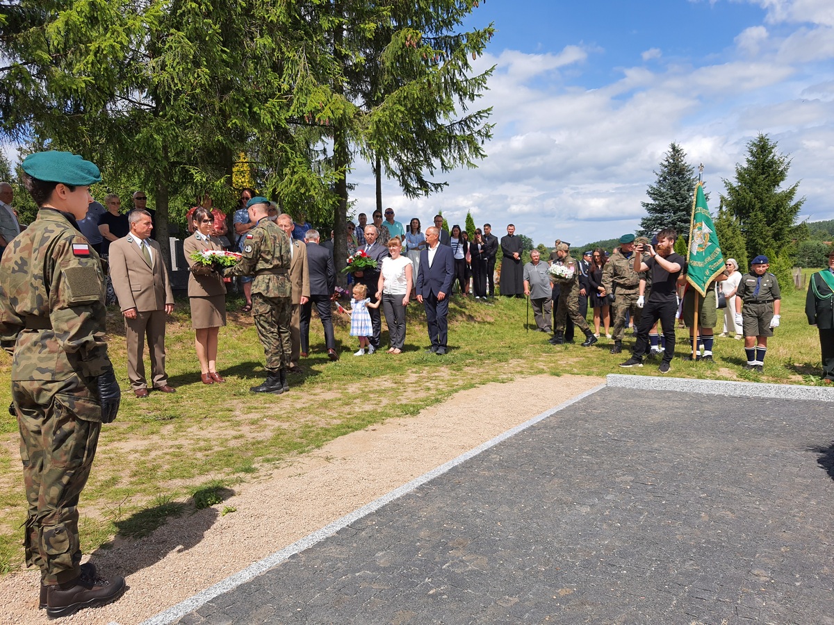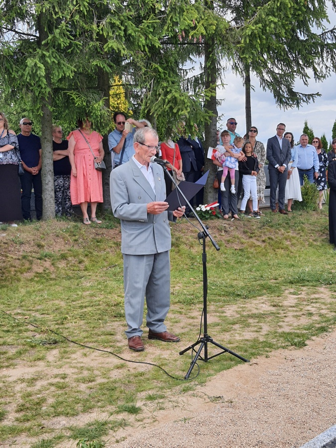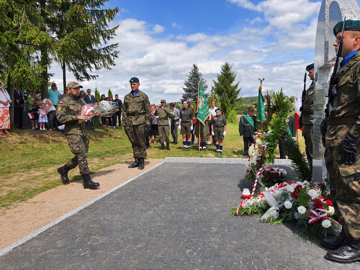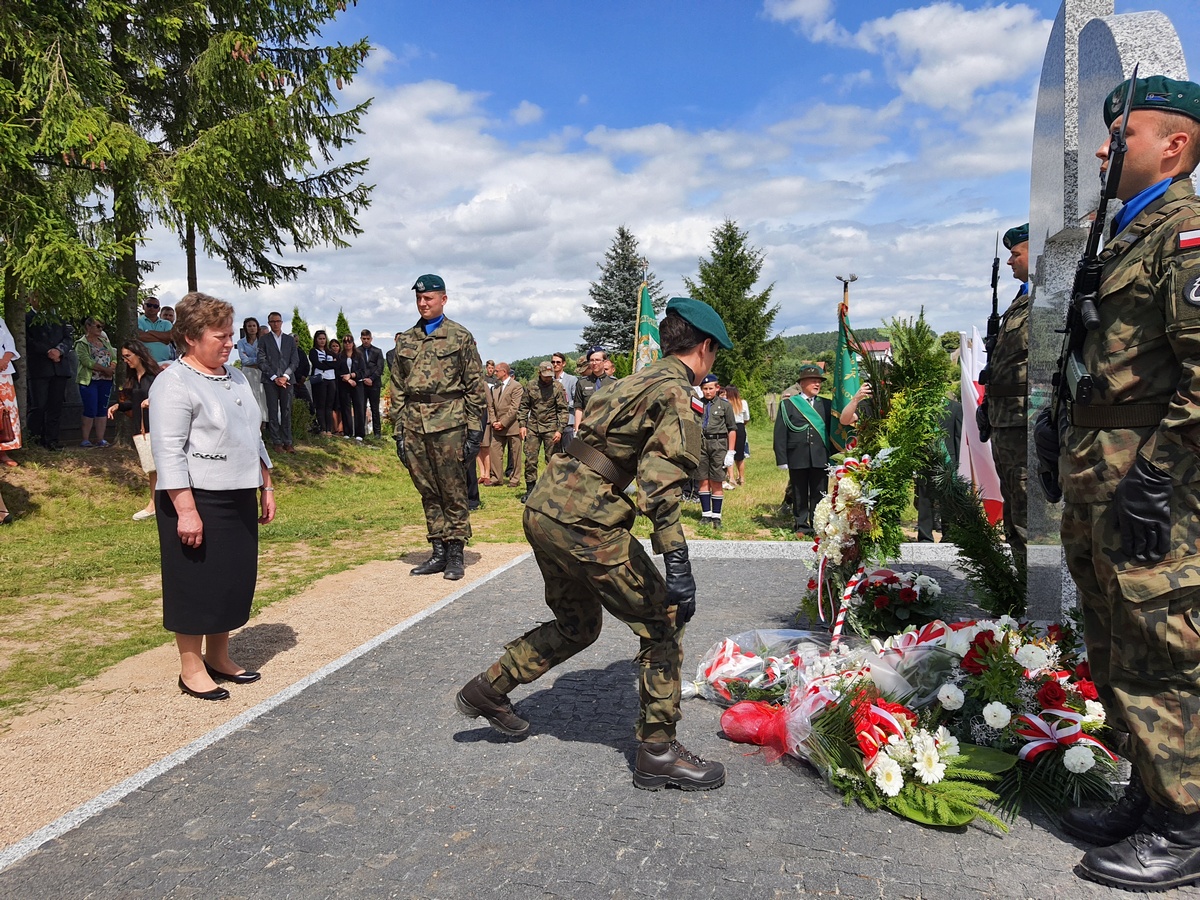 Wstęgę odsłaniającą pomnik przecięli Przedstawiciel Wojewody Warmińsko – Mazurskiego do spraw Kombatantów i Osób Represjonowanych Pan Władysław Kałudziński, Świadek Historii Józef Januszkiewicz i Pani Jadwiga Senderowska, Pan Daniel Kaźmierczak oraz Generał Dywizji Wojska Polskiego Pan Lech Stefaniak. Pomnik poświęcił ksiądz Roman Lompa, a przybyłe delegacje złożyły znicze i kwiaty.