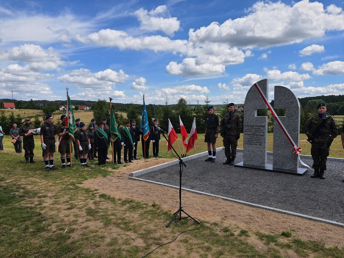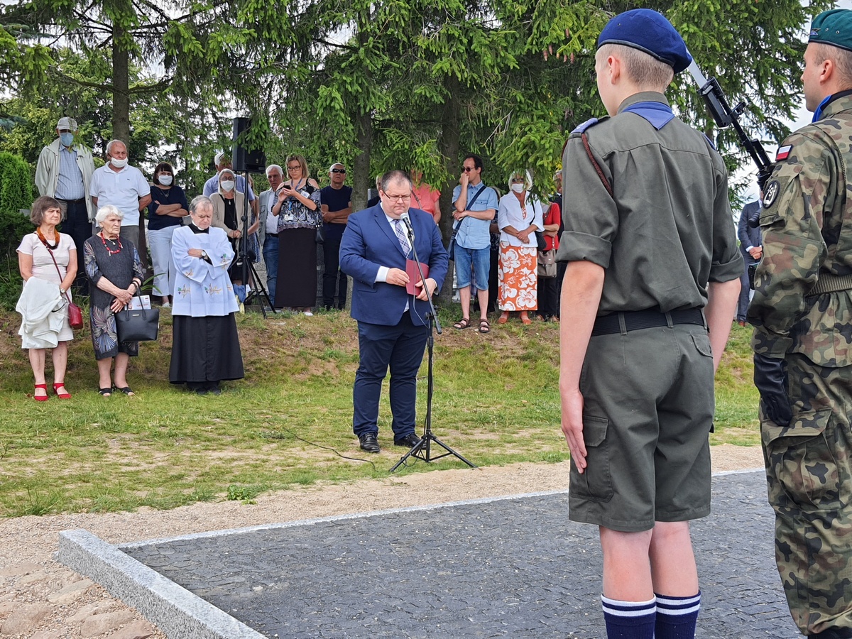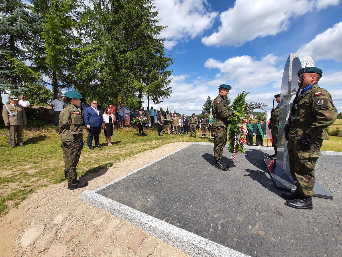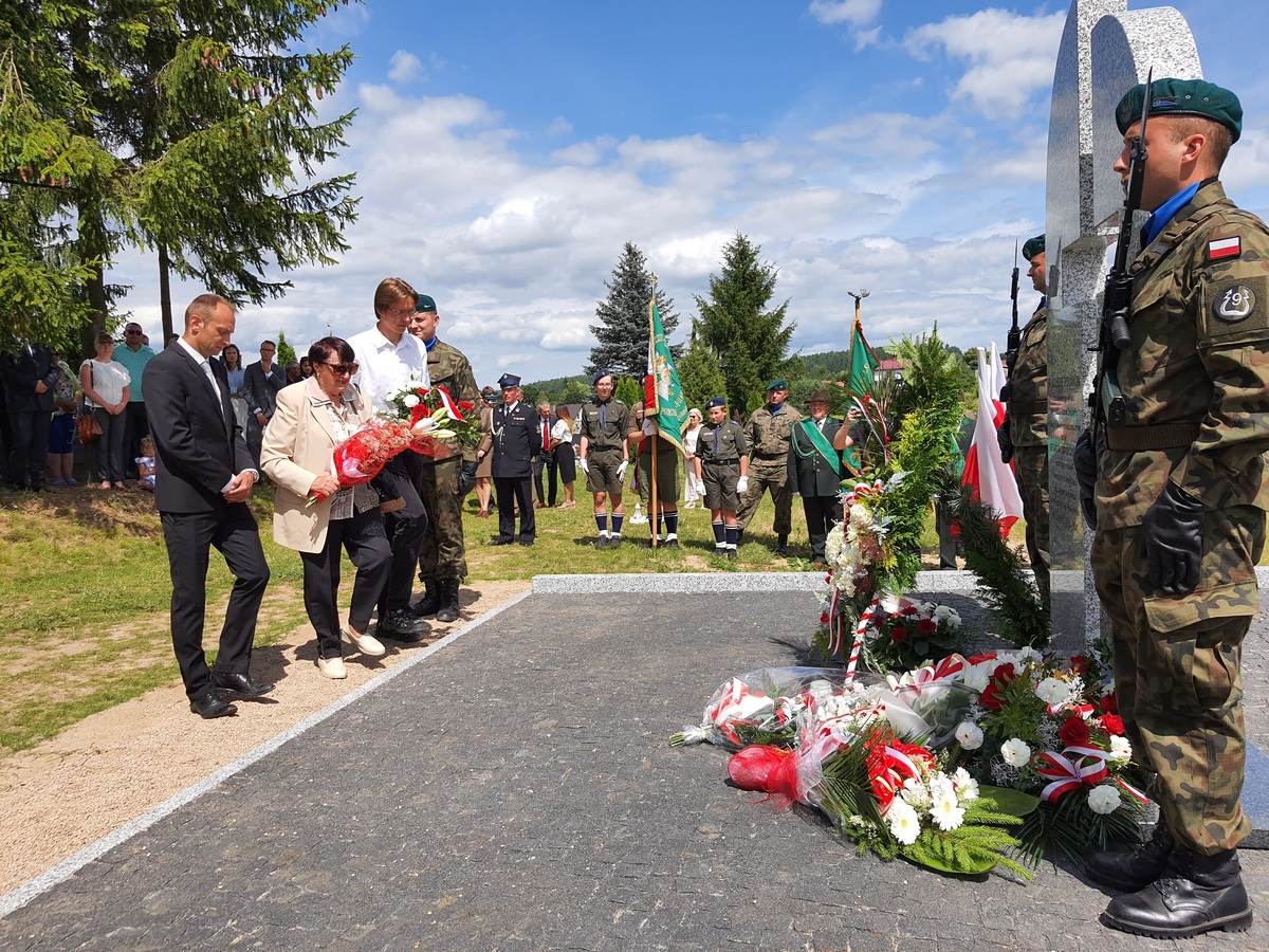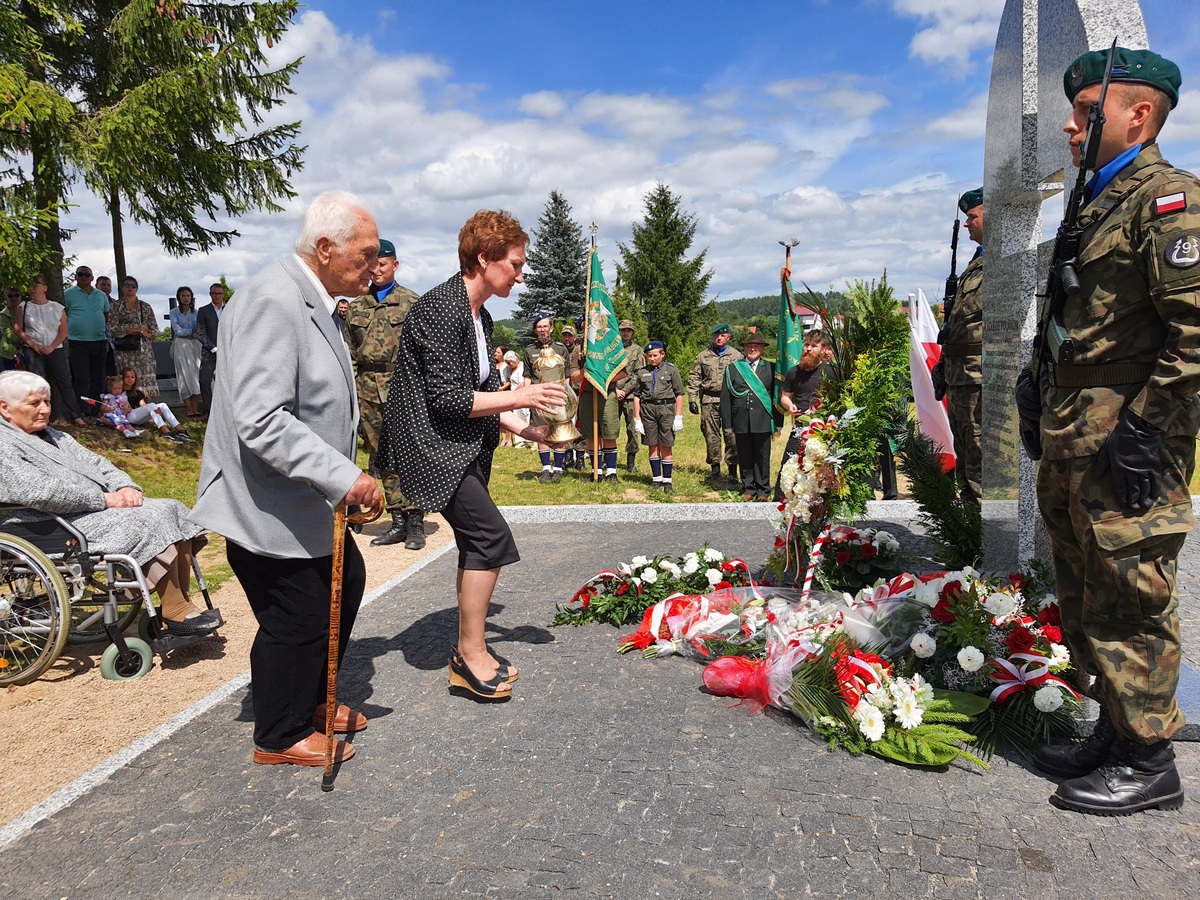 Wstęgę odsłaniającą pomnik przecięli Przedstawiciel Wojewody Warmińsko – Mazurskiego do spraw Kombatantów i Osób Represjonowanych Pan Władysław Kałudziński, Świadek Historii Józef Januszkiewicz i Pani Jadwiga Senderowska, Pan Daniel Kaźmierczak oraz Generał Dywizji Wojska Polskiego Pan Lech Stefaniak. Pomnik poświęcił ksiądz Roman Lompa, a przybyłe delegacje złożyły znicze i kwiaty.