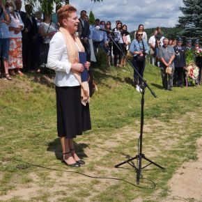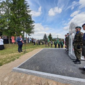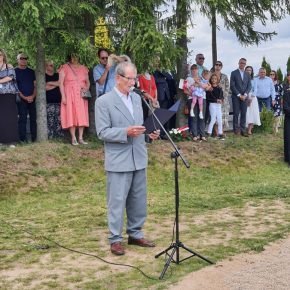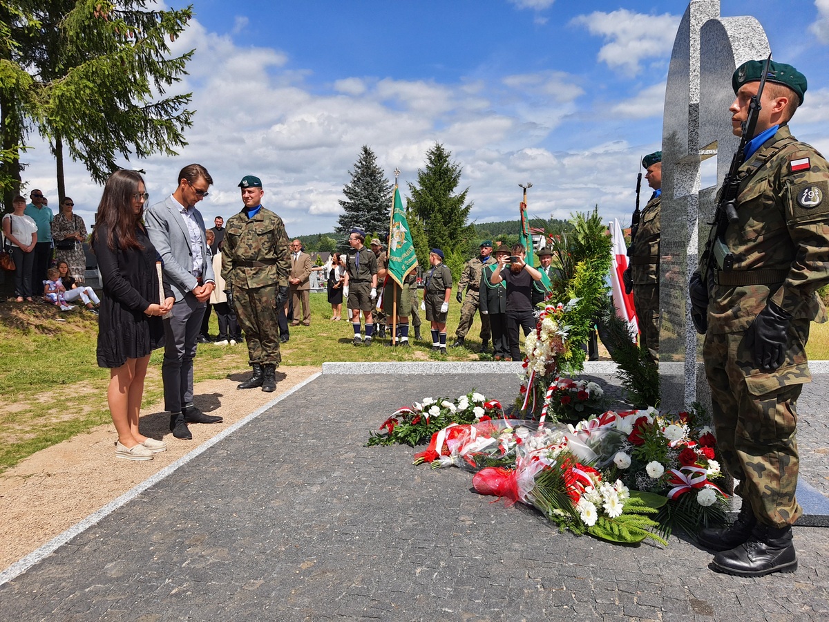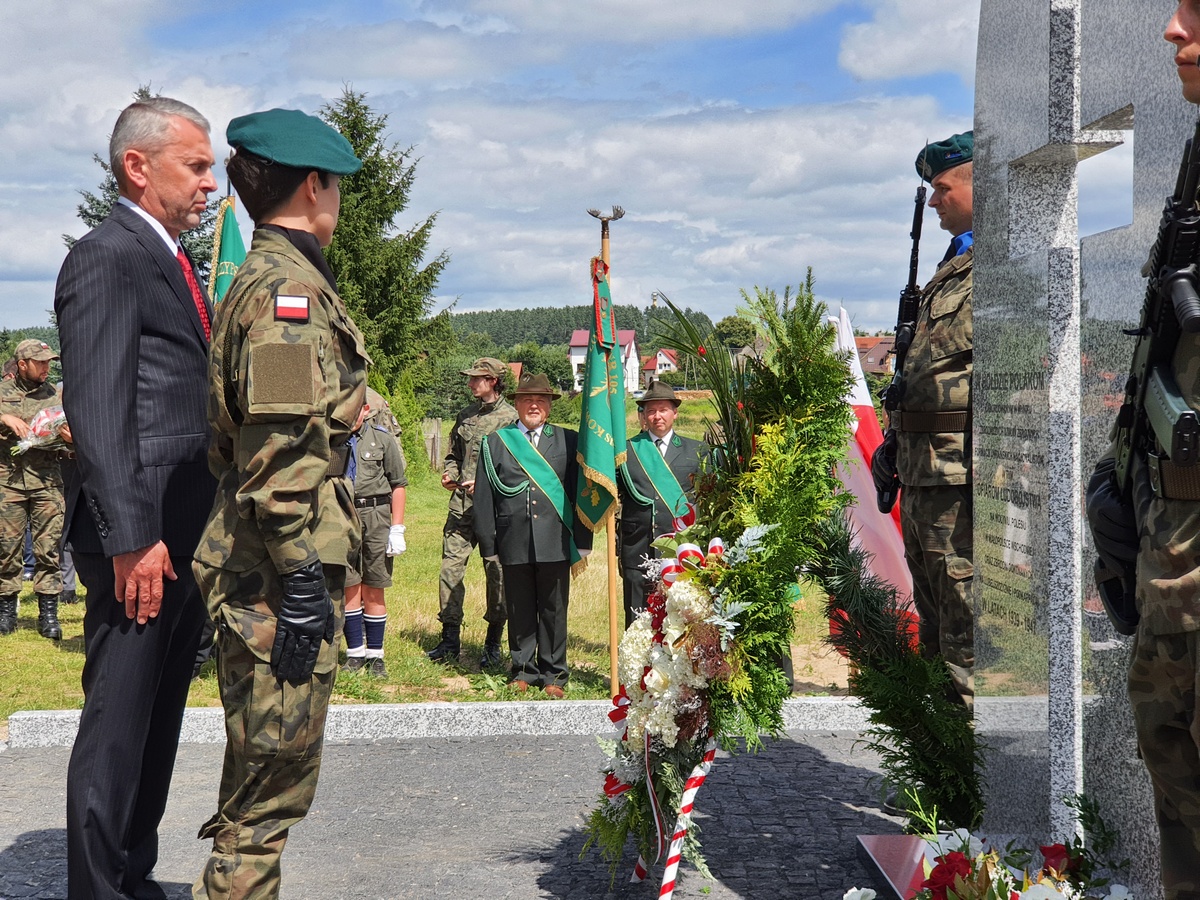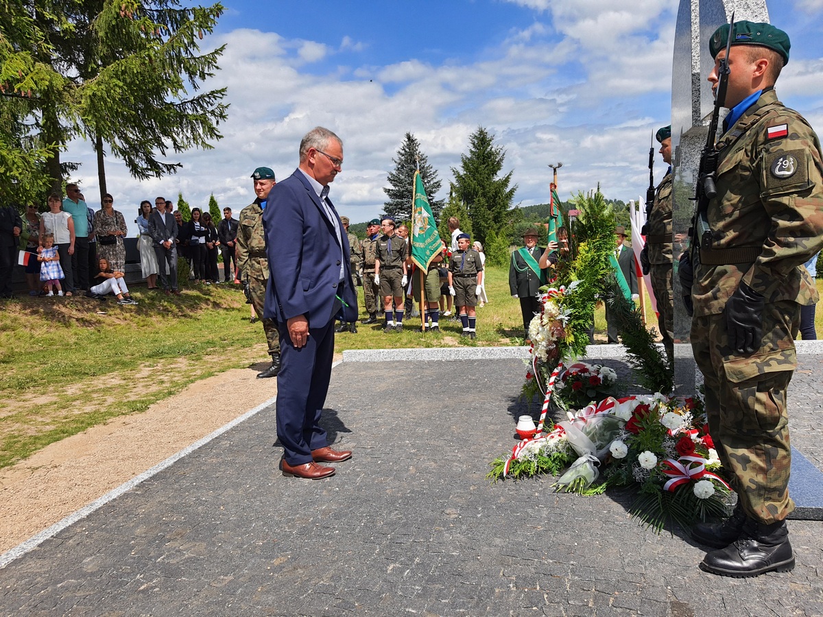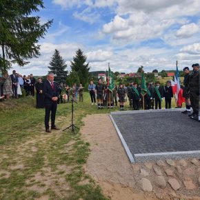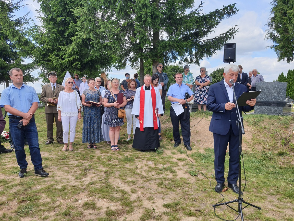 Wstęgę odsłaniającą pomnik przecięli Przedstawiciel Wojewody Warmińsko – Mazurskiego do spraw Kombatantów i Osób Represjonowanych Pan Władysław Kałudziński, Świadek Historii Józef Januszkiewicz i Pani Jadwiga Senderowska, Pan Daniel Kaźmierczak oraz Generał Dywizji Wojska Polskiego Pan Lech Stefaniak. Pomnik poświęcił ksiądz Roman Lompa, a przybyłe delegacje złożyły znicze i kwiaty.