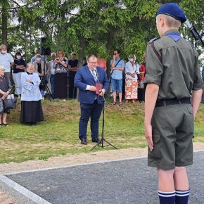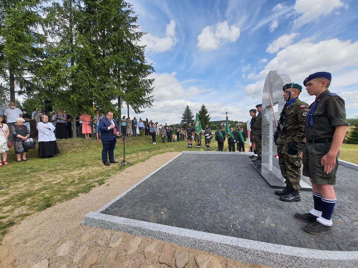Dnia 25 lipca 2020 roku odbyło się odsłonięcie Pomnika Ofiar Ludobójstwa nacjonalistów ukraińskich na Cmentarzu Komunalnym w Jedwabnie. Uroczystość rozpoczęła Msza Święta w Kościele Parafialnym pod wezwaniem Świętego Józefa Oblubieńca Najświętszej Maryi Panny w Jedwabnie prowadzona przez ks. proboszcza Romana Lompa. Następnie przy Pomniku głos zabrali Przedstawiciel Wojewody Warmińsko – Mazurskiego do spraw Kombatantów i Osób Represjonowanych Pan Władysław Kałudziński, Wicestarosta Powiatu Szczycieńskiego Pan Jerzy Krzysztof Szczepanek, Wójt Gminy Jedwabno Pan Sławomir Ambroziak, Przedstawicielka fundatorów Pomnika Rodzin Kresowych Pani Alina Kaźmierczak oraz Świadek Historii Pani Jadwiga Senderowska. W przemówieniach opisywano tragiczny przebieg wydarzeń, gdzie w latach 1939-1947 w sposób bestialski zginęło na Kresach 200 tysięcy Polaków, w tym 60 tysięcy mieszkających na Wołyniu. Ofiary te w 90 procentach bez pogrzebu i krzyży leżą w dołach śmierci na trupich polach i do dziś rozciągane są bronami i pługami. Podkreślano wkład mieszkańców Wołynia, który to społeczeństwo wniosło w naszą mazurską ziemię.