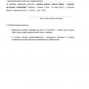 Wykonaj dowolną techniką pracę pokazującą działania na rzecz ochrony środowiska, jakie podejmują młodzi mieszkańcy regionu i wyślij ją w postaci skanu lub zdjęcia na adres [email protected] do dn. 28.02.2021 r.