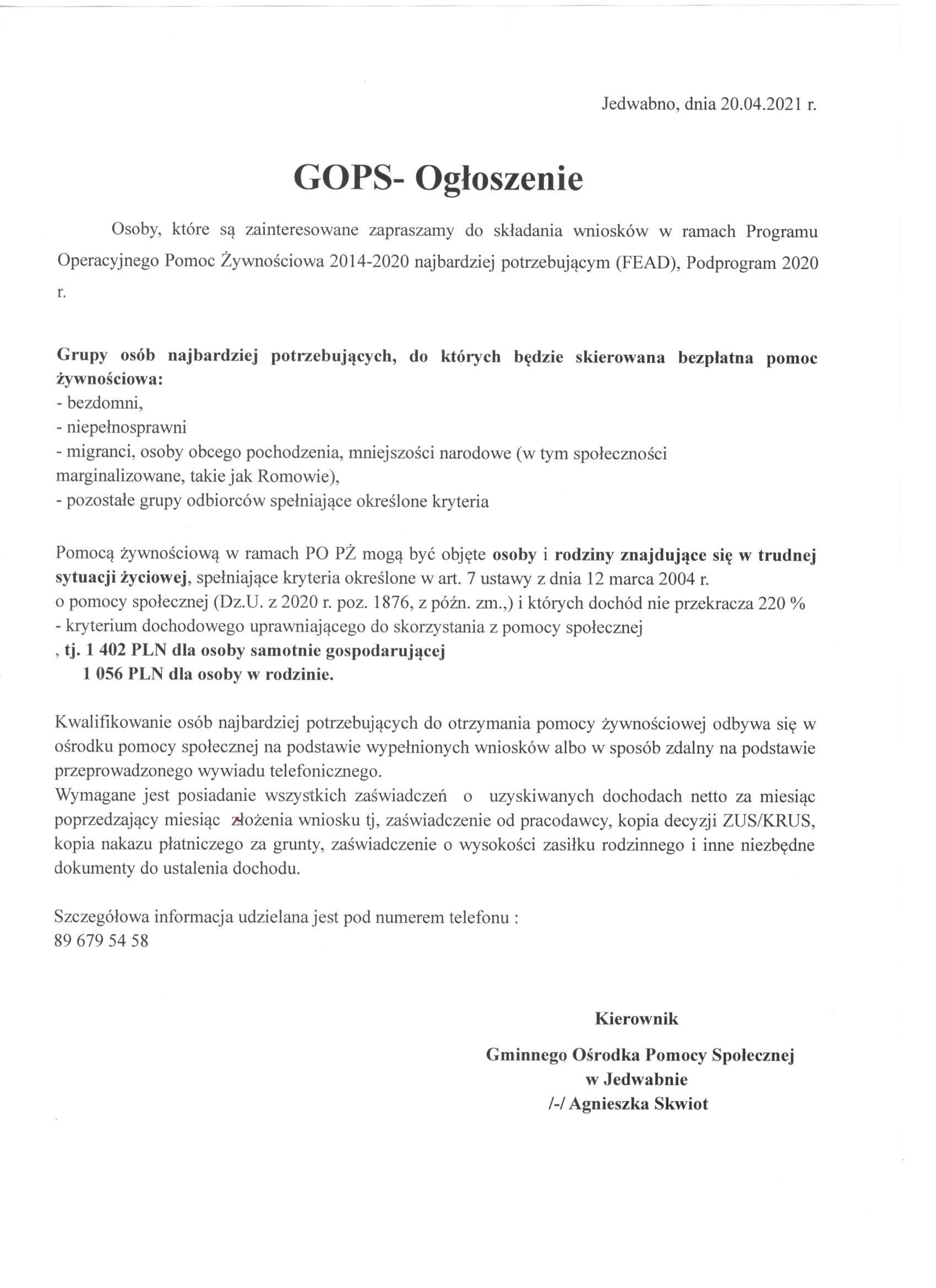 Ogłoszenie GOPS