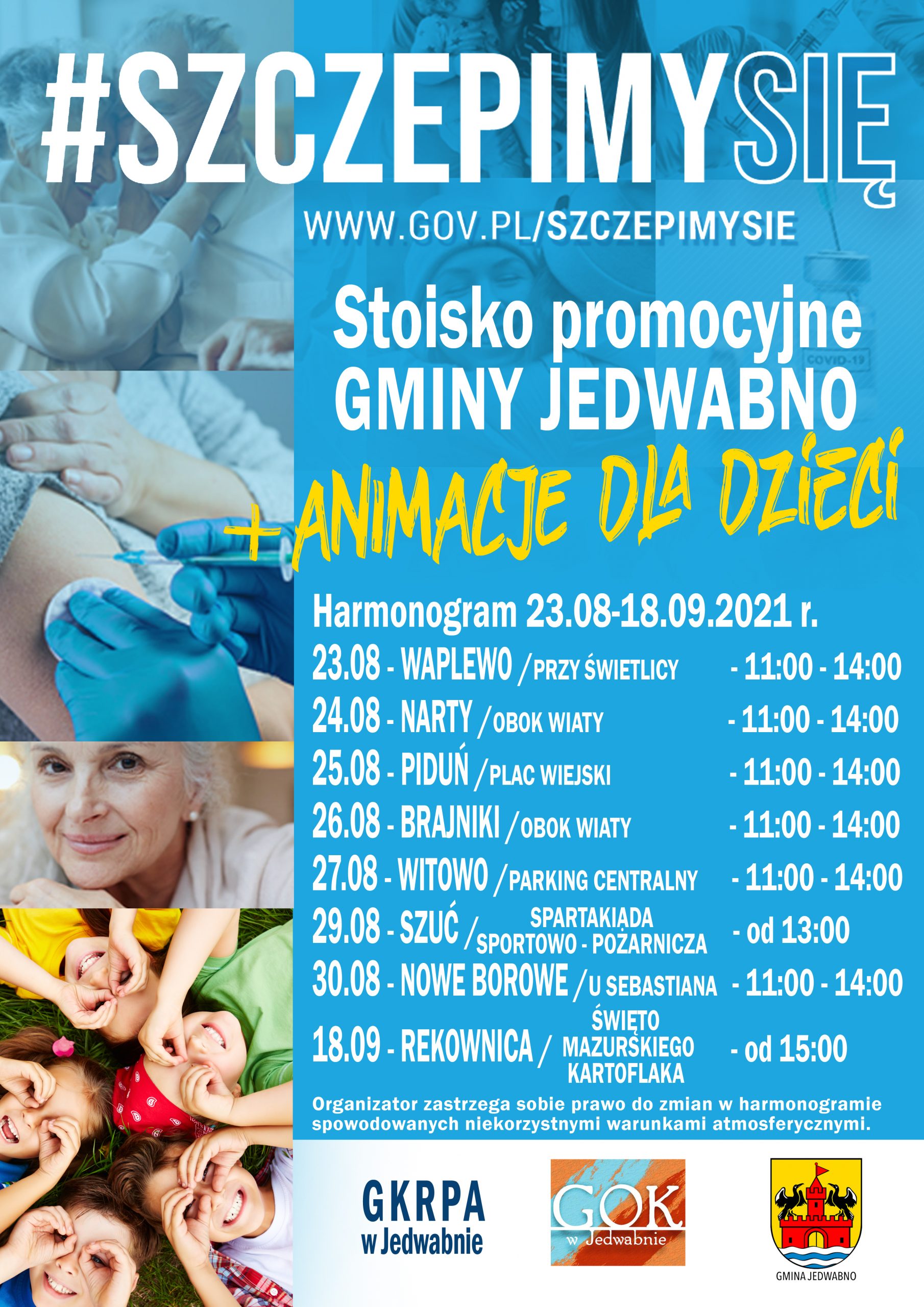 #SZCZEPIMYSIĘ – stoisko promocyjne Gminy Jedwabno. Grafik na kolejny tydzień