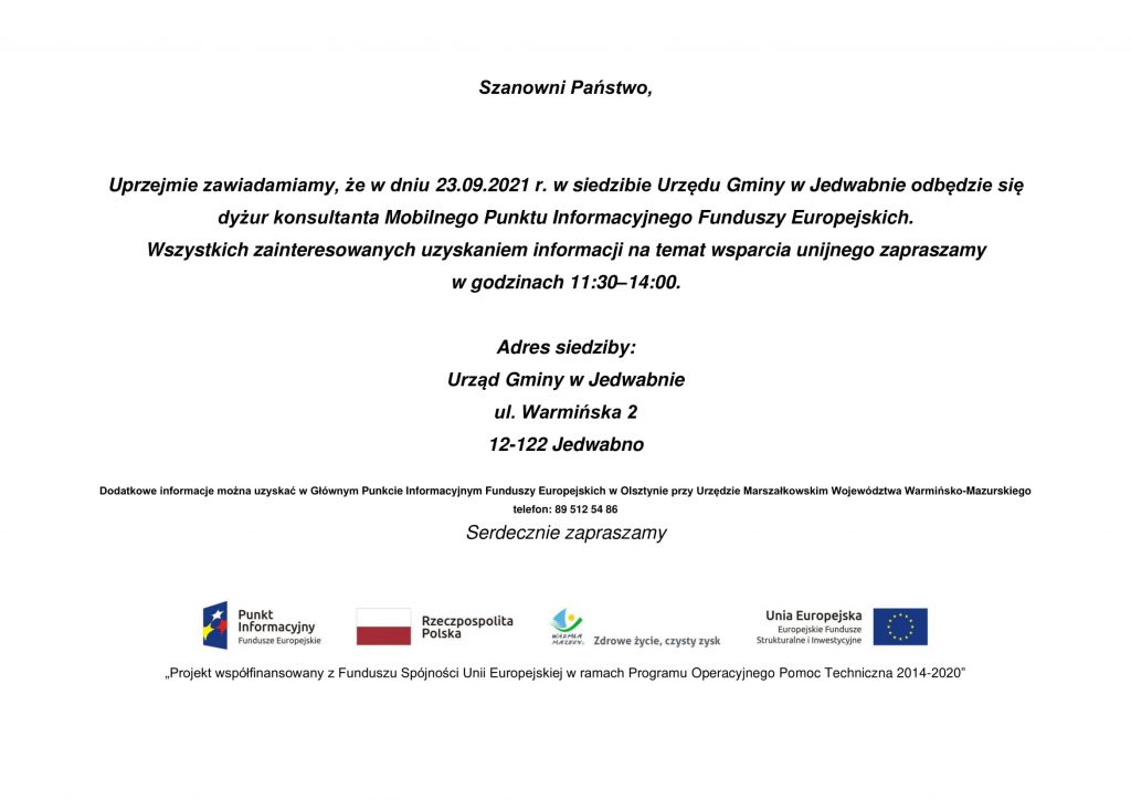 3. Dyżur konsultanta Mobilnego Punktu Informacyjnego Funduszy Europejskich