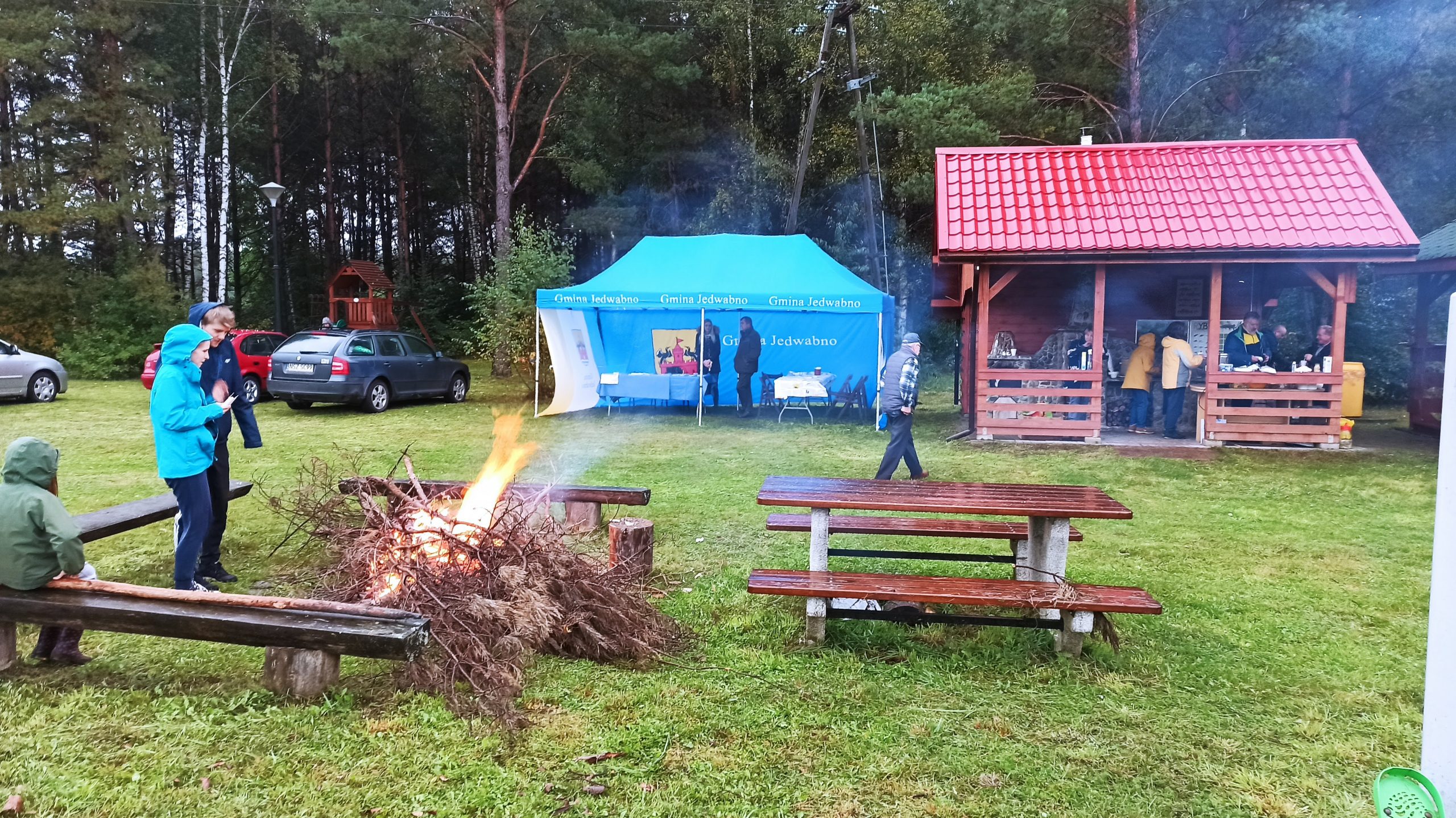 Płonęło ognisko, w którym piekły się  ziemniaki, wszyscy bawili się świetnie, było wspólne śpiewanie a nawet tańce.