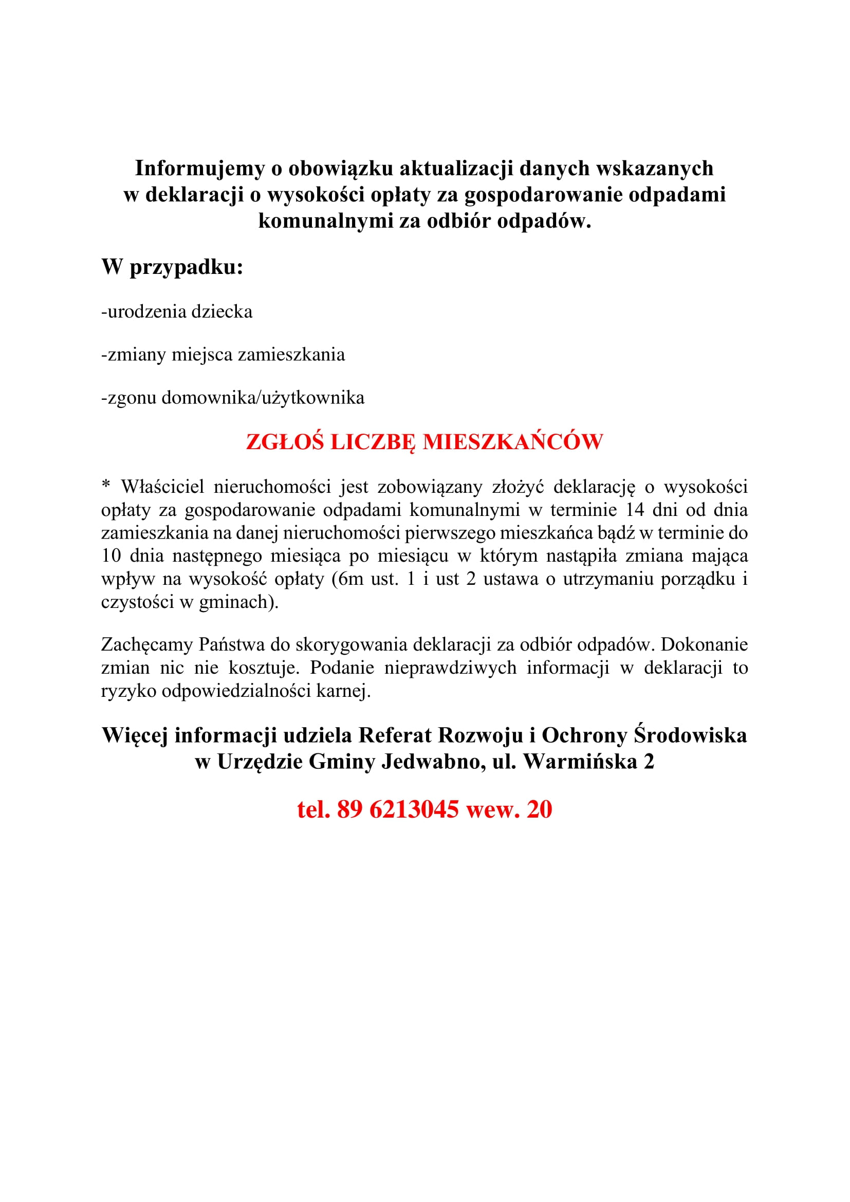 3. Informacja o obowiązku aktualizacji danych w deklaracji o wysokości opłaty ze gospodarowanie odpadami