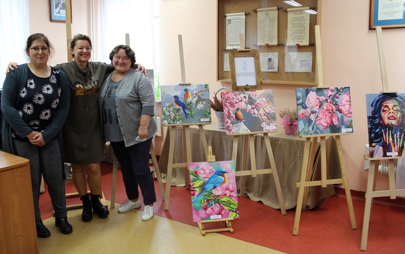 Tym razem prezentujemy w bibliotece wystawę „Sztuka odpoczynku”, która zawiera prace trzech artystek: Haliny Kurowskiej, Beaty Wojciechowskiej i Ingridy Trzcińskiej. Autorki wykonały prace pod opieką terapeutki Beaty Federowicz, która tak pisze o wystawie: