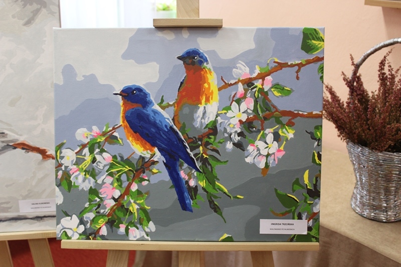 „Prace wykonane zostały podczas zajęć w pracowni plastyczno-rękodzielniczej oraz w domach Uczestniczek – w ramach pracy zdalnej – podczas zawieszenia działalności ŚDS. Technika prac to: mozaika diamentowa oraz malowanie po numerach. Obie techniki pozwalają jednocześnie tworzyć i odpoczywać, uzyskać twórcze doświadczenie, odkryć własny potencjał, spędzić czas z korzyścią dla siebie, zrelaksować się, sprawić, że umysł będzie wypoczęty, a humor bardzo dobry. W konsekwencji powstają przynoszące satysfakcję własnoręcznie wykonane prace. Dziękujemy widzom za przybycie, zapraszamy do zapoznania się z fragmentem naszej pracy twórczej. Mamy nadzieję, że oglądanie dzieł przyniesie Państwu tyle samo pozytywnych emocji jak jej twórcom”.