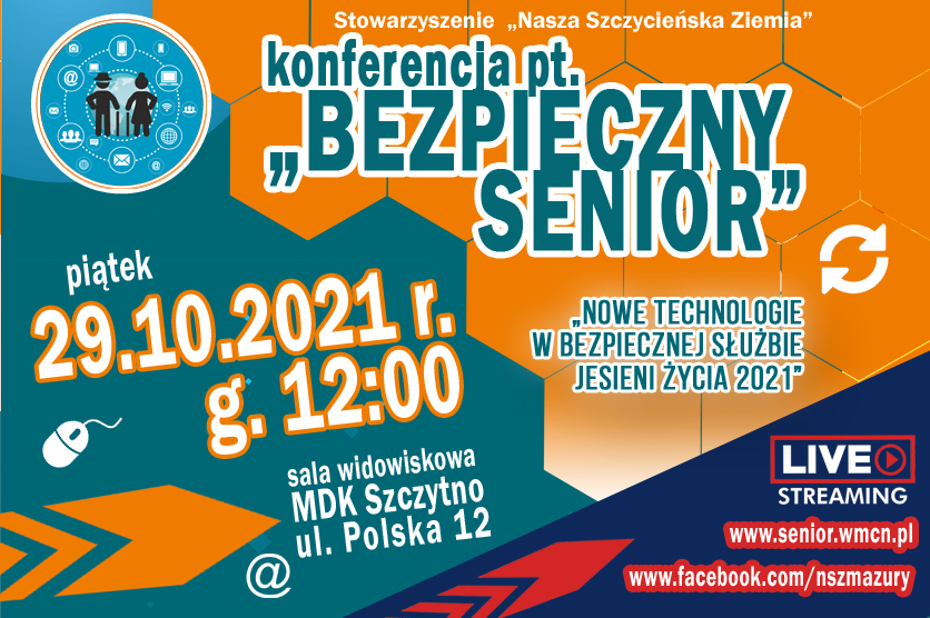Dziś o godzinie 12:00 stowarzyszenie Nasza Szczycieńska Ziemia poprowadzi konferencję pt. „Bezpieczny Senior” Jeśli nie możecie być w Miejskim Domu Kultury w Szczytnie osobiście to zapraszamy do obejrzenia transmisji na żywo. https://www.youtube.com/watch?v=fdPg5FwQfgg