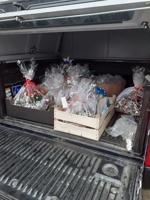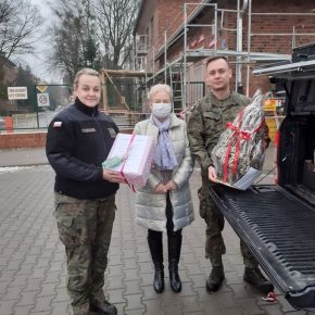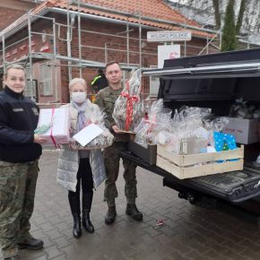 Do wielu kartek z życzeniami mieszkańcy dołączyli wykonane własnoręcznie stroiki świąteczne, ozdoby choinkowe i małą podświetlaną szyszkową choinkę. Przekazanie życzeń i podarunków świątecznych na granicę polsko – białoruską, było możliwe dzięki pomocy Pani mjr Magdaleny Kościńskiej z 16 Pomorskiej Dywizji Zmechanizowanej w Olsztynie.