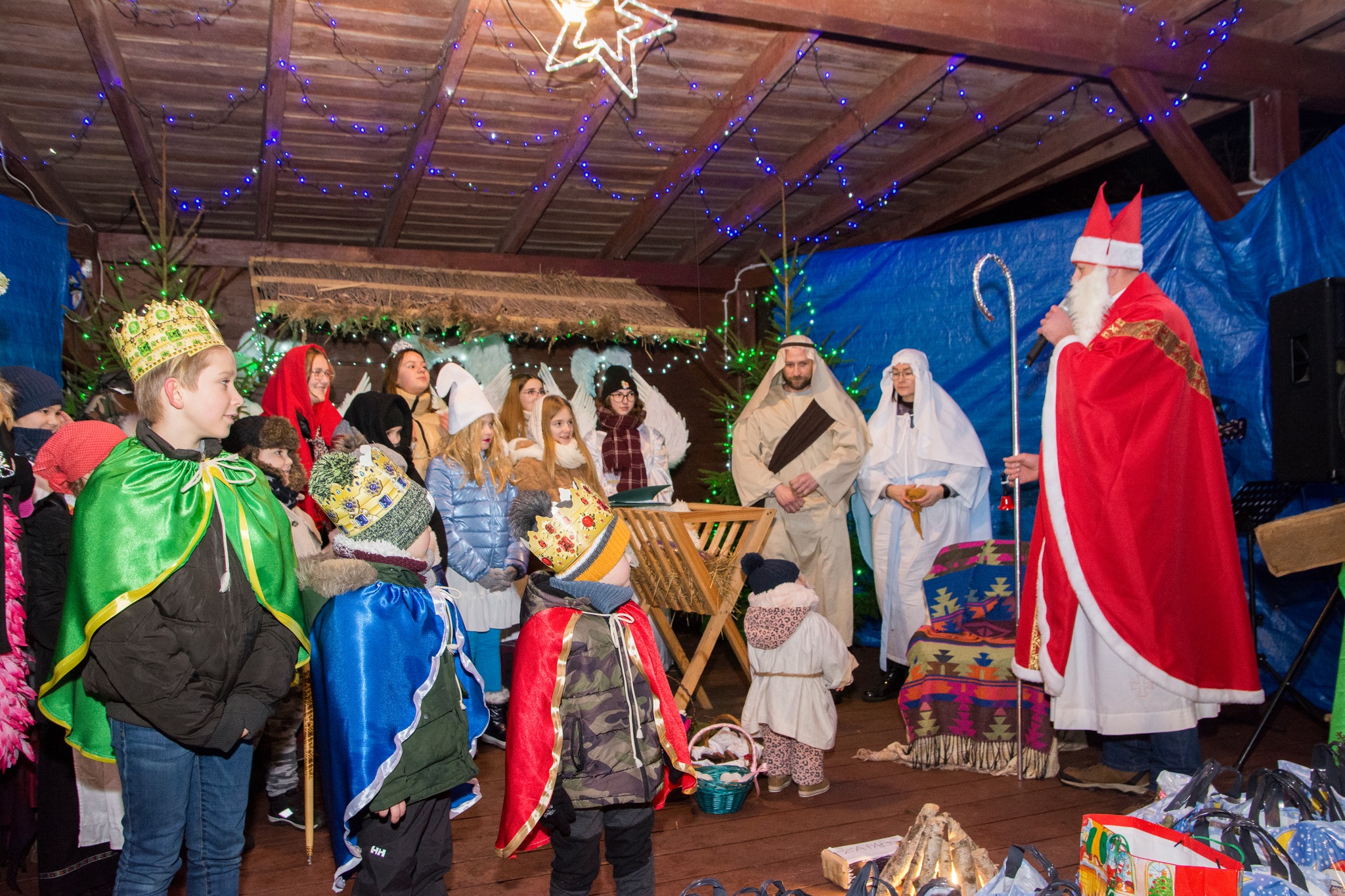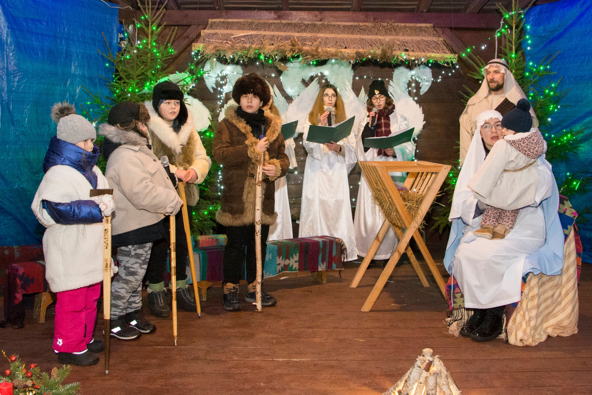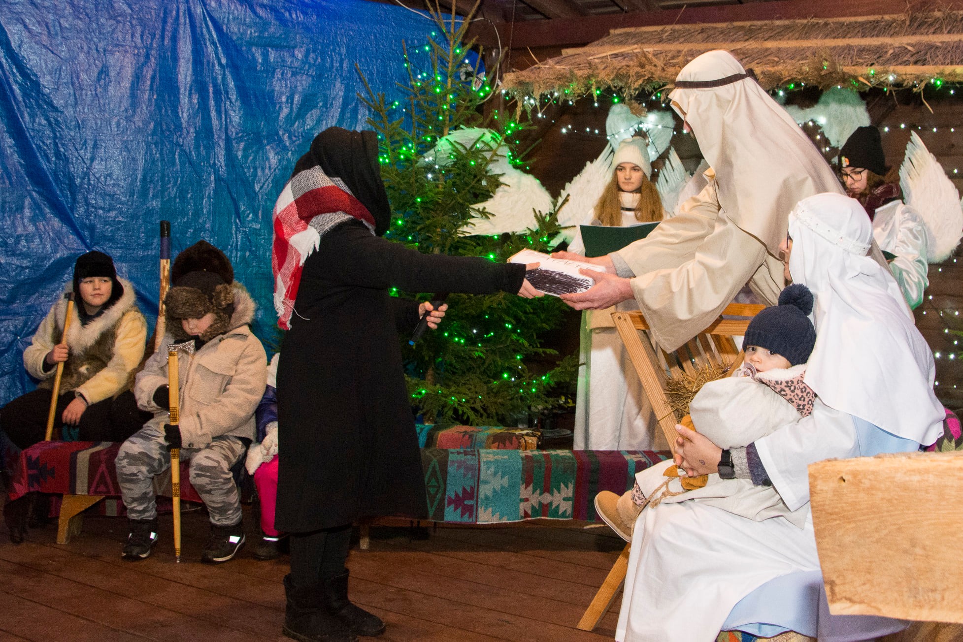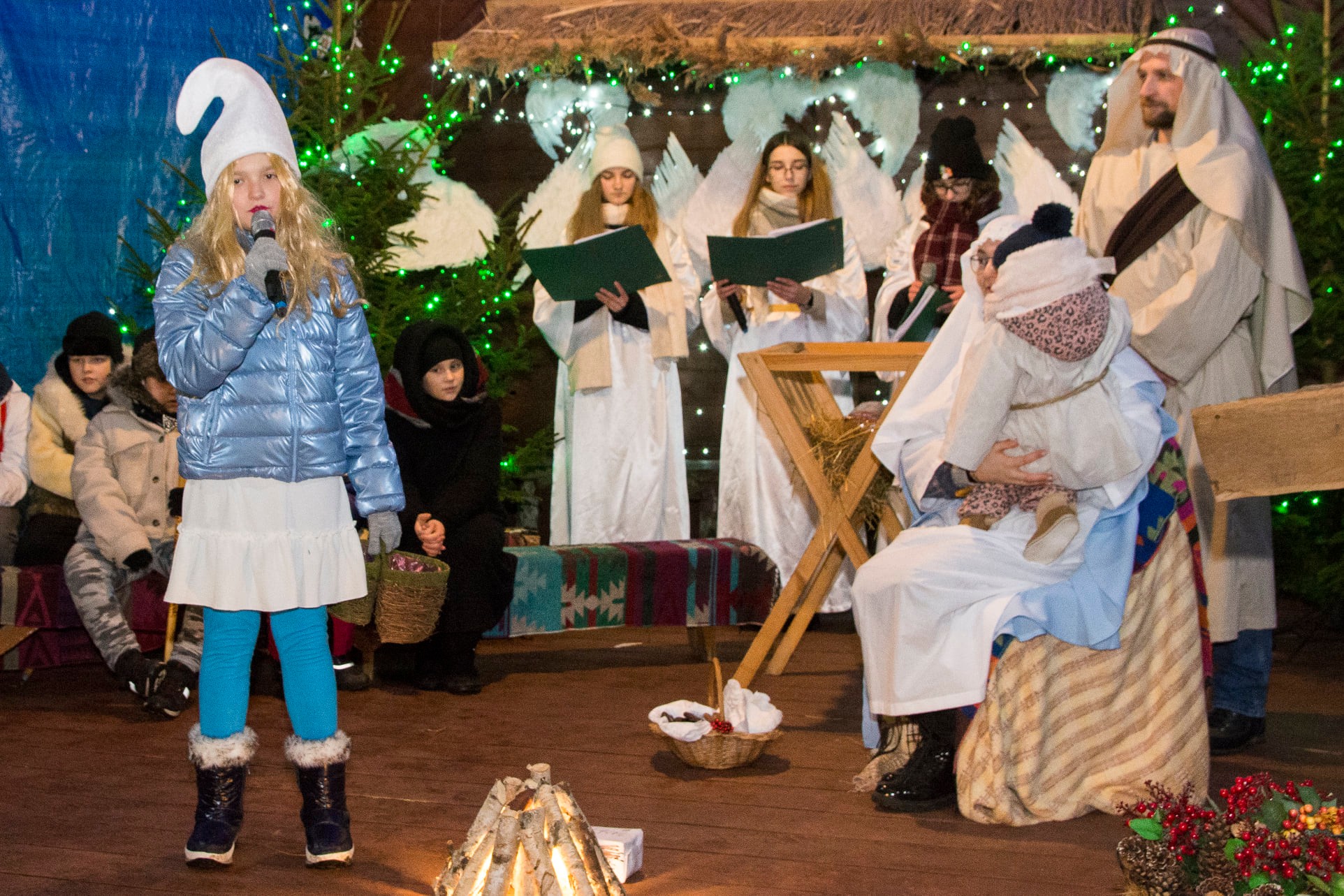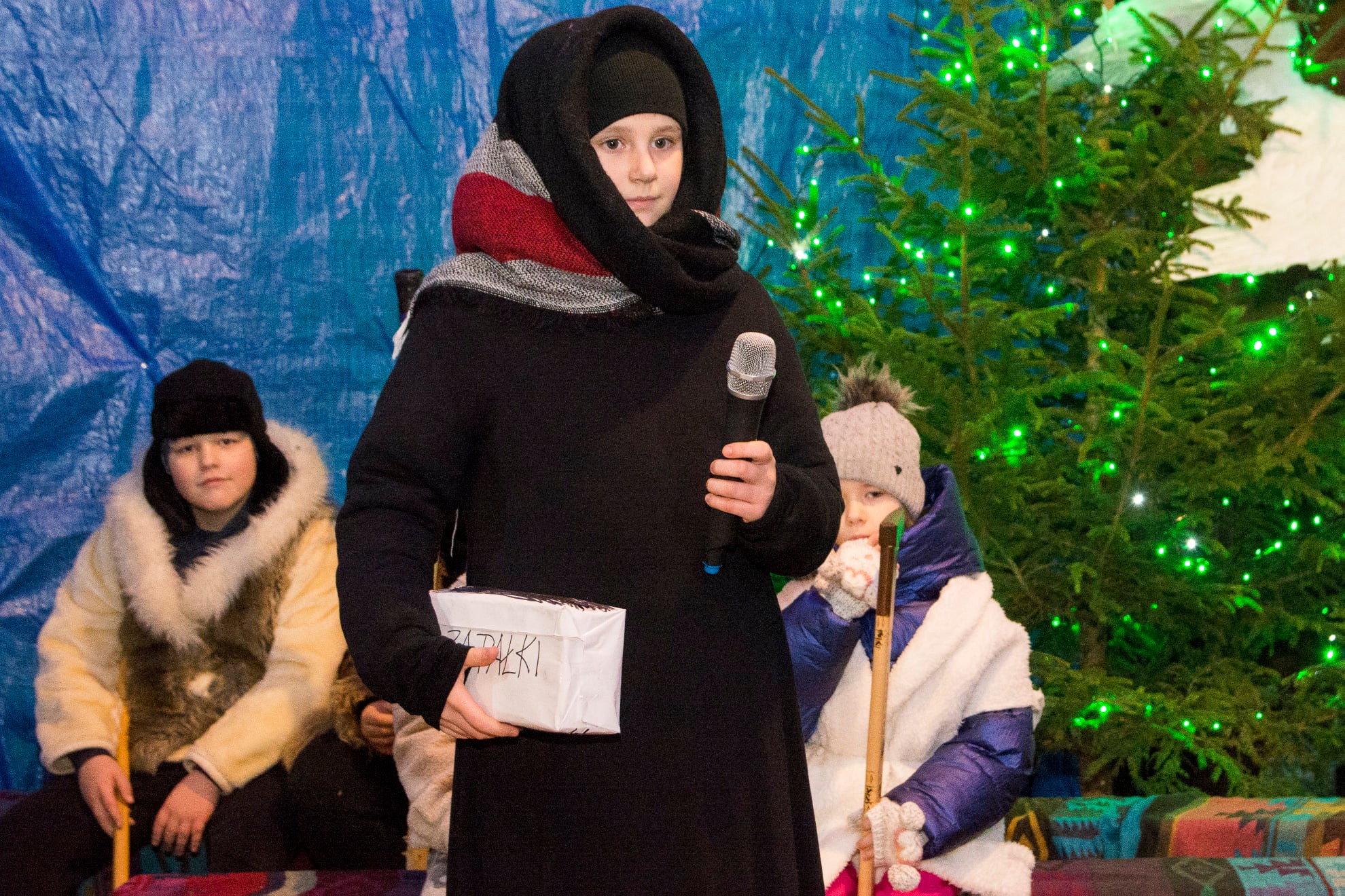 Każdy z uczestników jasełek włożył dużo serca w wykonanie strojów kostiumowych, za co bardzo dziękujemy. Dziękujemy także za podarowanie choinek przez Nadleśnictwo Jedwabno do przystrojenia Stajenki oraz za podwózkę Trzech Króli kabrioletem przez Denisa. Ogromne podziękowania dla Św. Mikołaja, który obdarował prezentami uczestników przedstawienia.