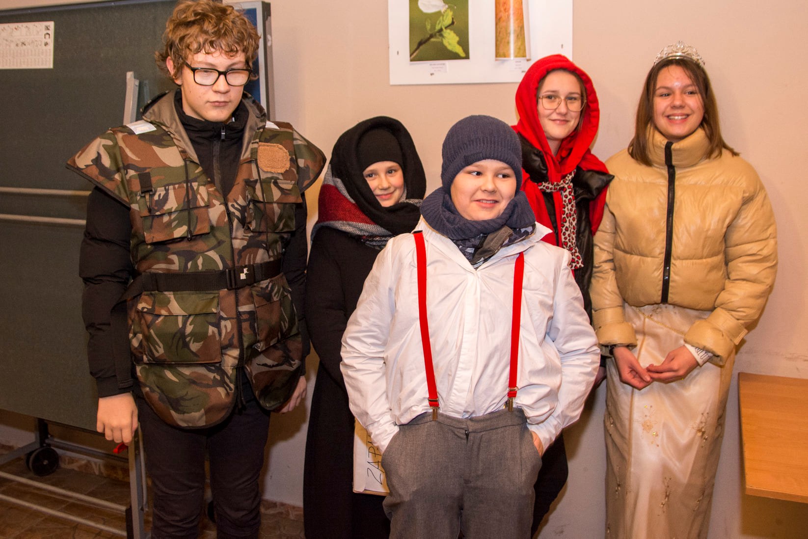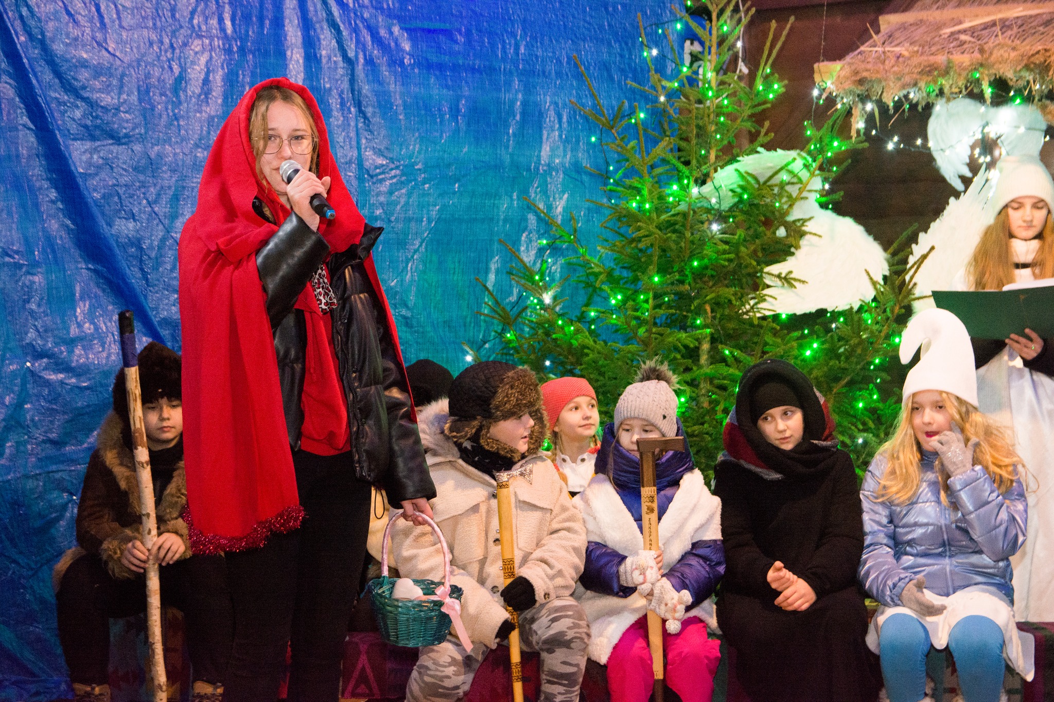 Maryja Józef i Jezus- Magda, Sebastian i Helenka, Aniołowie – Alicja, Julia i Zosia, Pastuszkowie – Nikola, Gabryś, Adrian i Olaf , Trzej Królowie – Janek, Marcel i Miłosz, Dziewczynka z zapałkami – Amelka, Jaś i Małgosia – Igor i Hania, Smerfetka – Lenka, Czerwony Kapturek – Zuzia, Sierotka Marysia – Marcelina, Rybak – Bartek, Kopciuszek – Nadia, Calineczka – Jagoda.