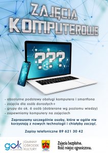 Zapraszamy osoby dorosłe i seniorów na zajęcia komputerowe dla początkujących.